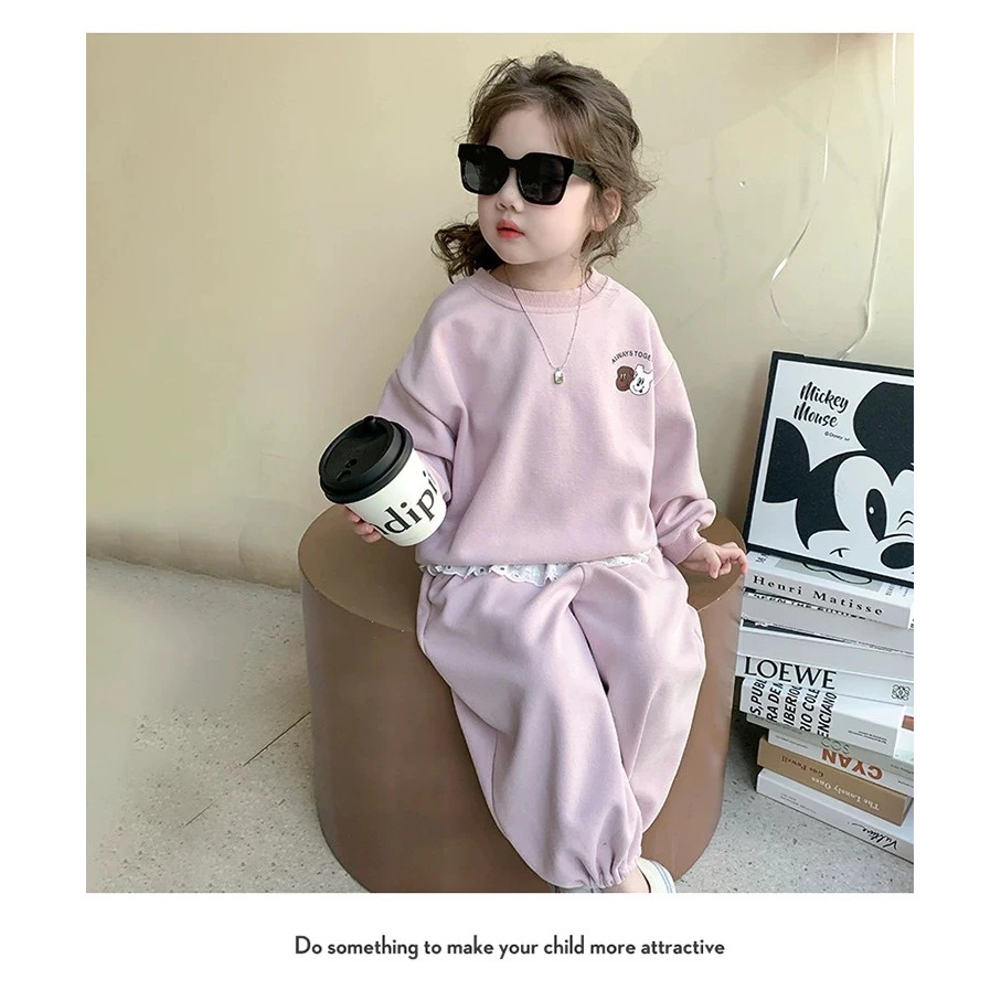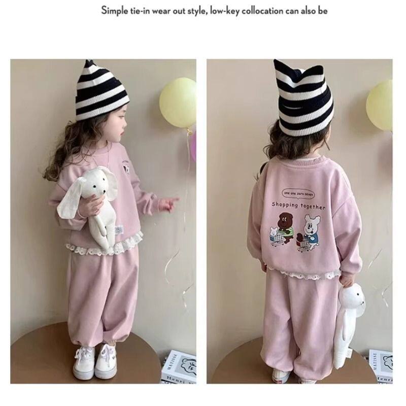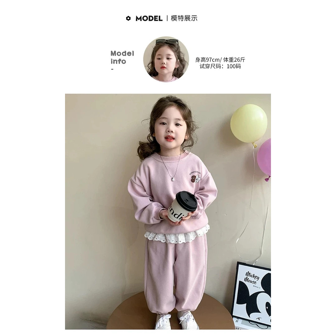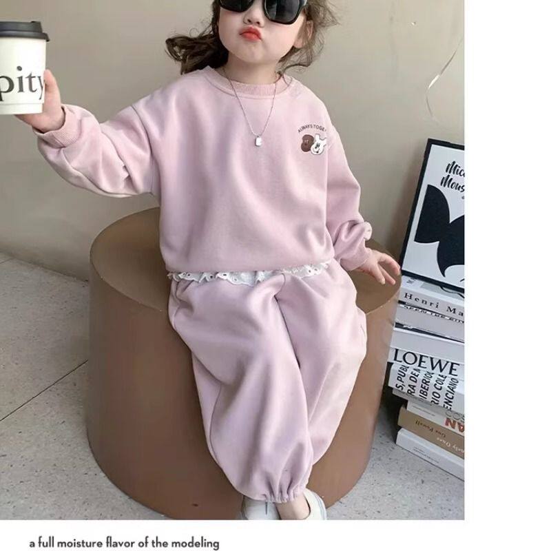 女童卫衣套装秋季2026新款儿童洋气时髦秋装女宝宝两件套粉色花边