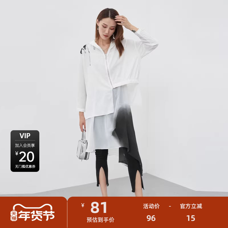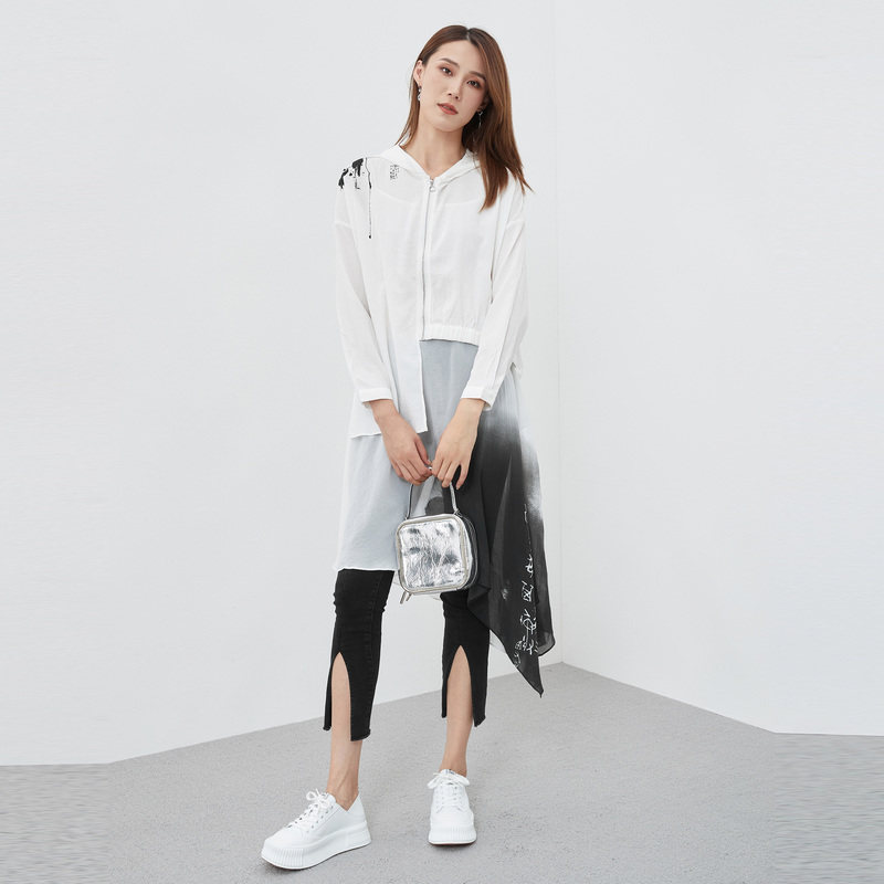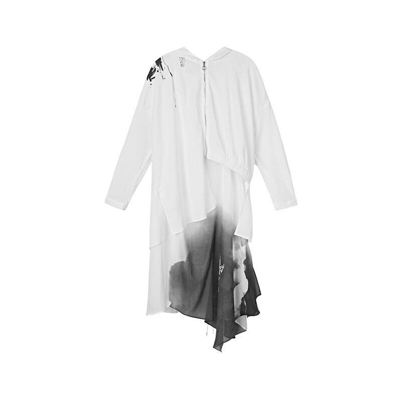 sdeer 圣迪奥 女装不规则下摆水墨抽绳连衣裙S20181206