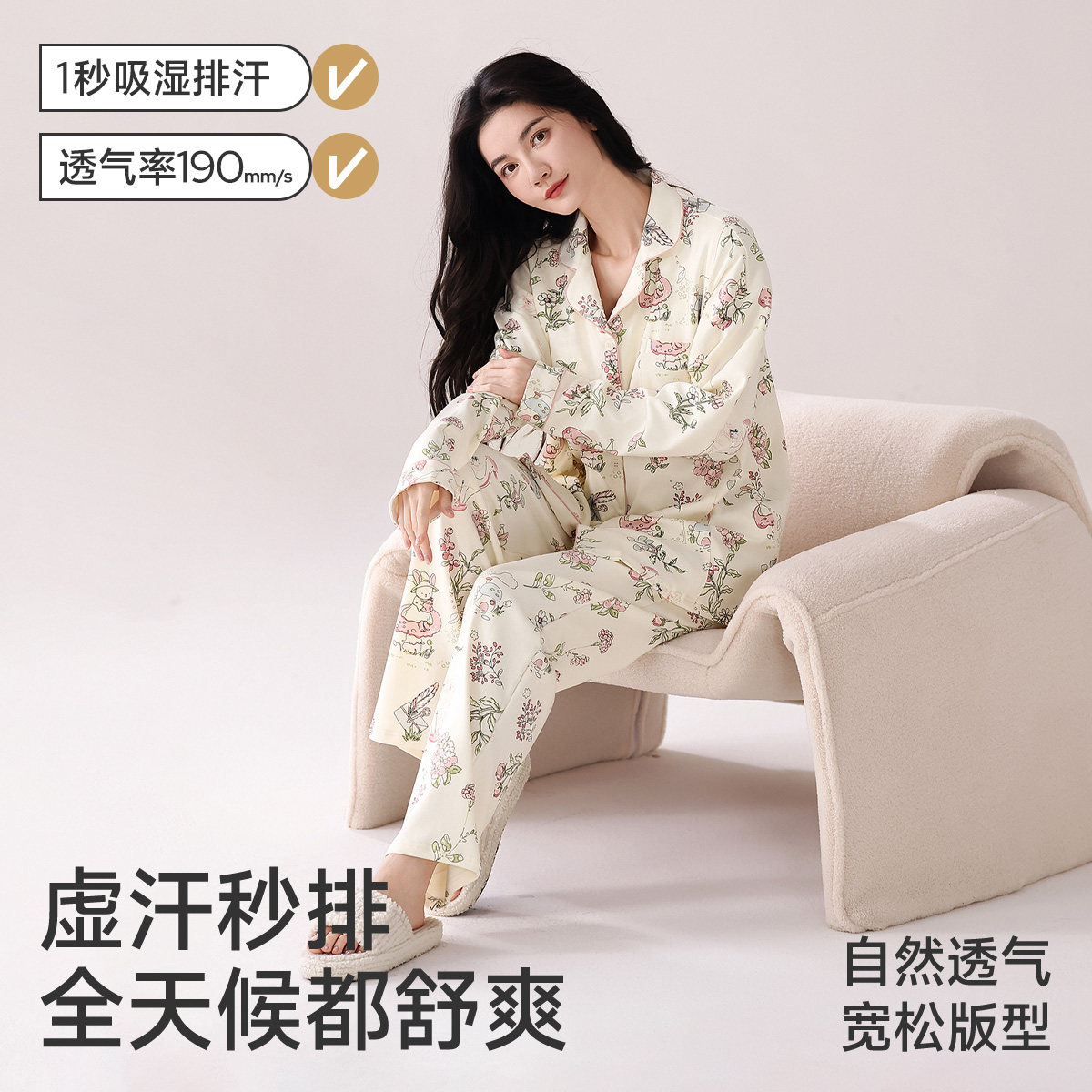 十月结晶兜兜鸭纯全棉吸汗月子服哺乳睡衣7A抗菌12月家居服女冬季