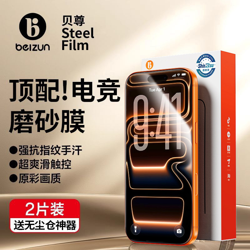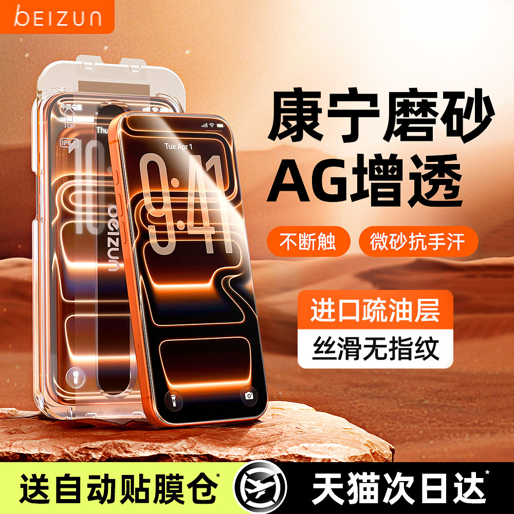 【升级康宁磨砂】贝尊适用苹果17promax磨砂钢化膜iphone16Pro手机膜15新款14无尘仓贴膜13电竞游戏防指纹Air