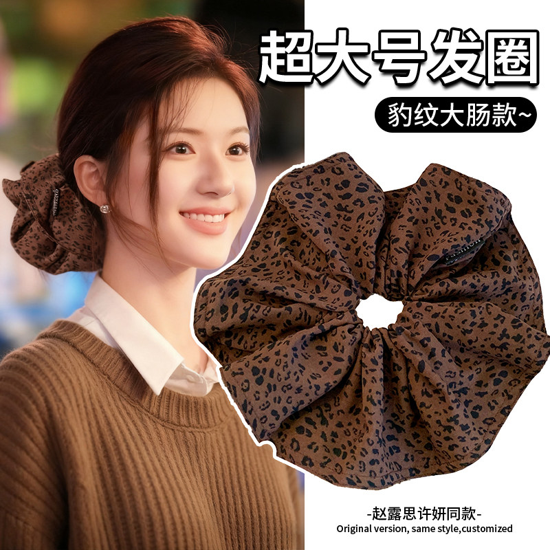 格纹秋冬慵懒超大大肠发圈女2025新款豹纹高级感丸子头头花绳头饰