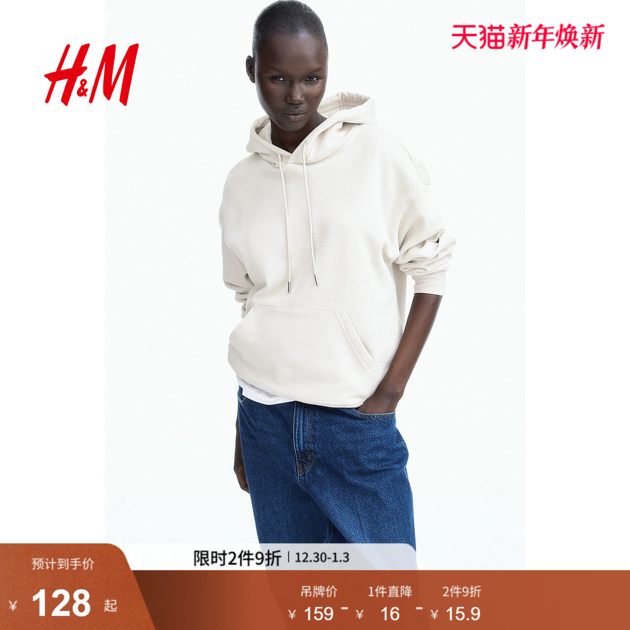 HM女装卫衣冬季长袖复古休闲时尚潮流宽松套头美式连帽衫0456163