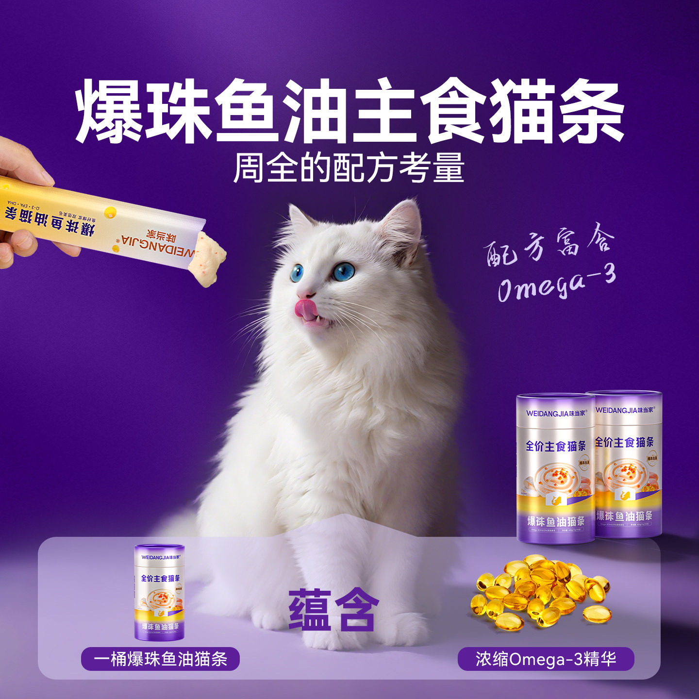 味当家鱼油猫条主食防掉毛增肥发腮猫零食成幼猫条官方旗舰店正品