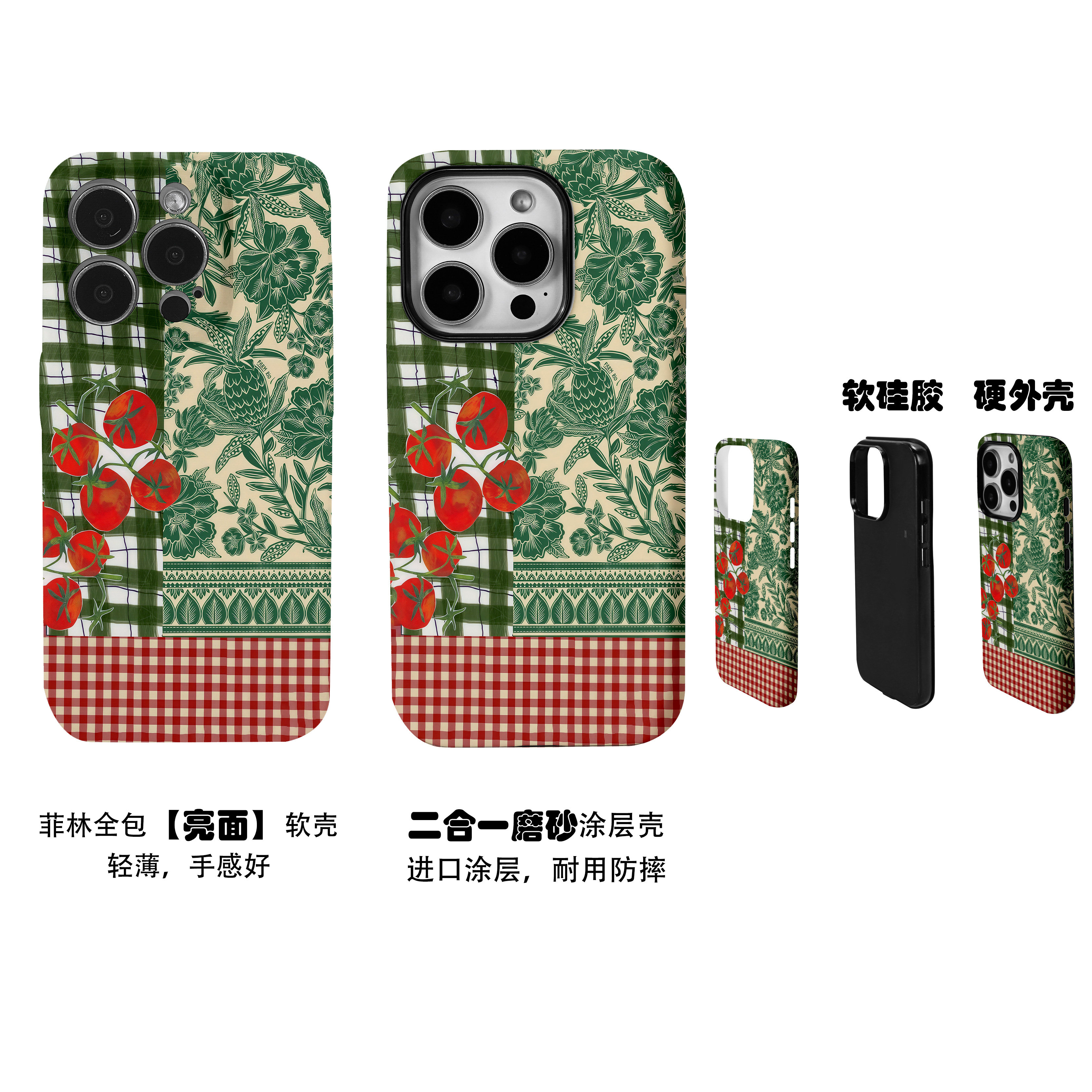 复古田园果蔬格子拼接菲林二合一手机壳适用苹果17nova14华为p70mate60小米15opporen14ovivo荣耀300iPhone16