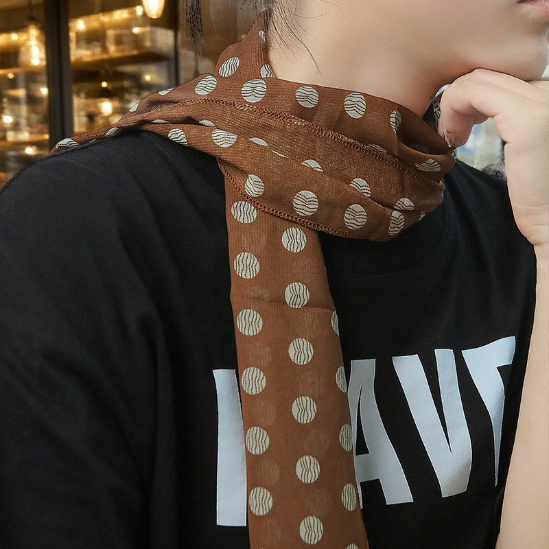 棕色波点丝巾印花高级百搭配饰系脖女2025年新款发带绑发长条围巾