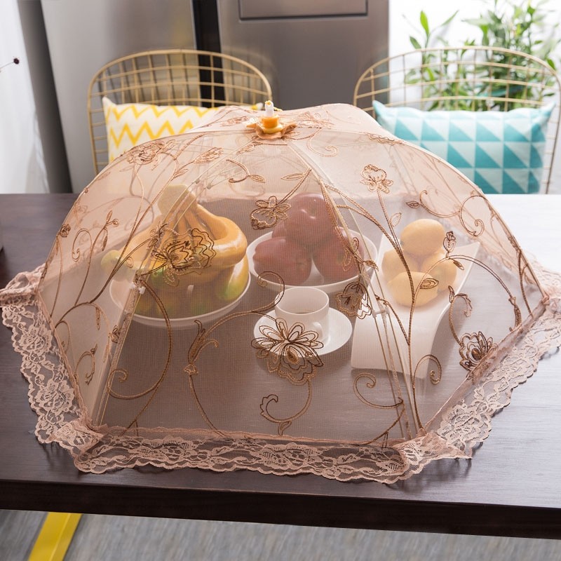 餐桌盖菜罩镂空饭桌圆形剩饭剩菜伞罩子折叠可拆洗防苍蝇蚊子家用