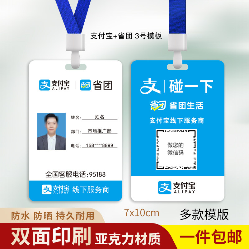 三合一省团生活工作牌支付宝京东工作证地推推广员挂牌胸吊牌定制