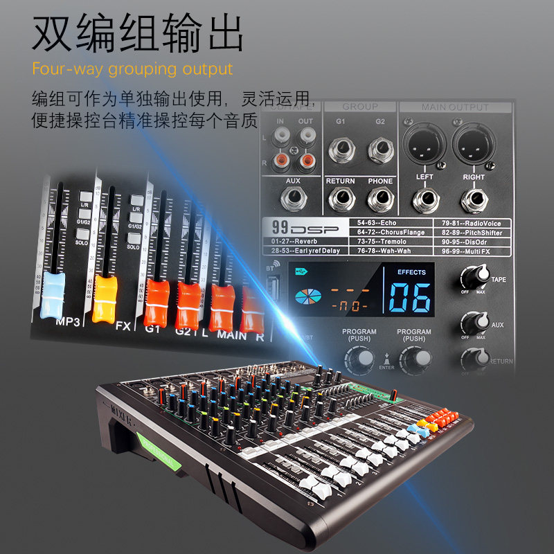 专业双编组调音台舞台演出会议工程婚庆用双均衡蓝牙99种混响效果