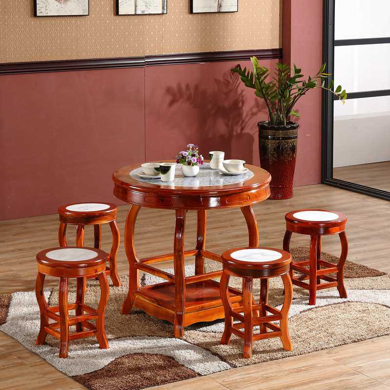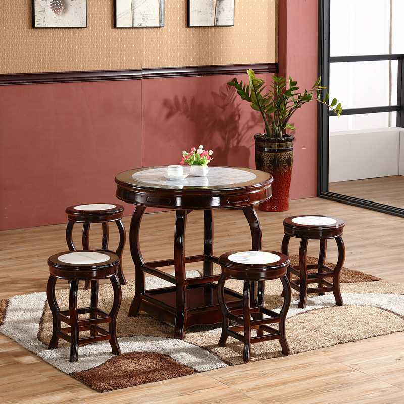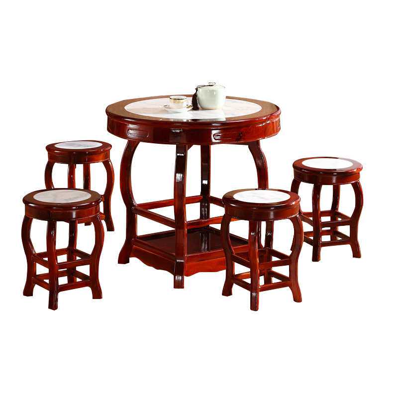 实木面馆凉茶甜品云石圆形小吃店桌椅快餐桌大理石饭店圆桌子组合