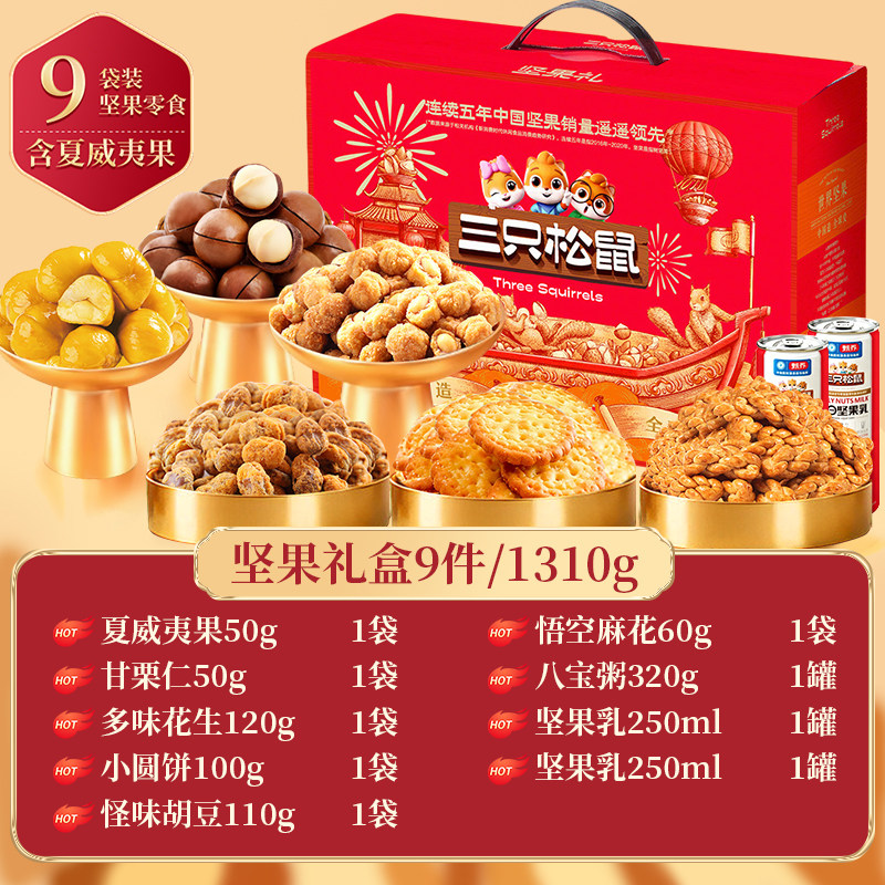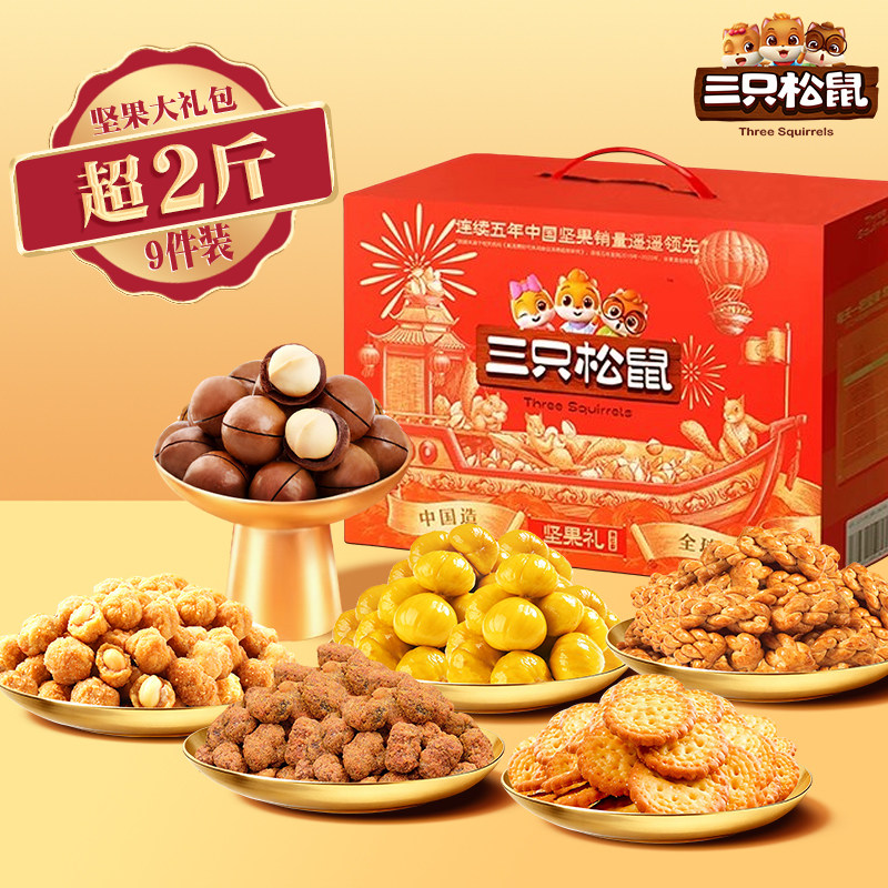 三只松鼠坚果礼盒瑞红款1310g(9袋)