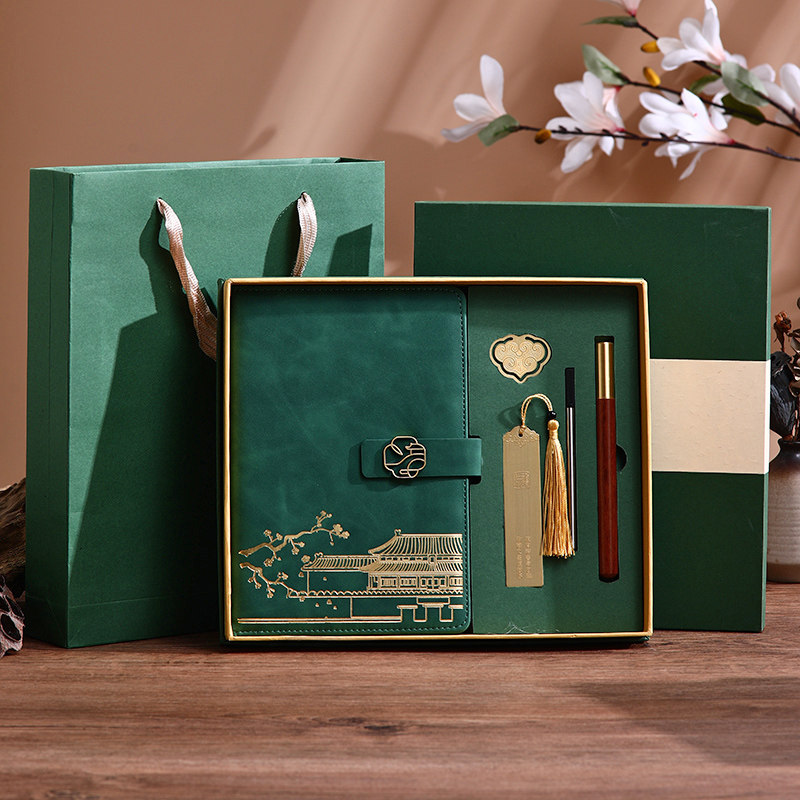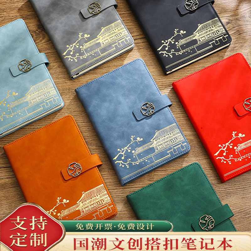 2025年新款国潮皮面笔记本定制可印logo商务办公会议本子套装礼品