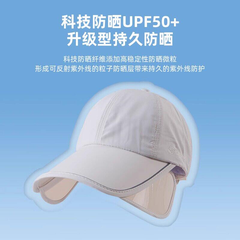 夏季防晒帽女加大加宽帽檐户外运动遮全脸空顶鸭舌帽扎马尾太阳帽