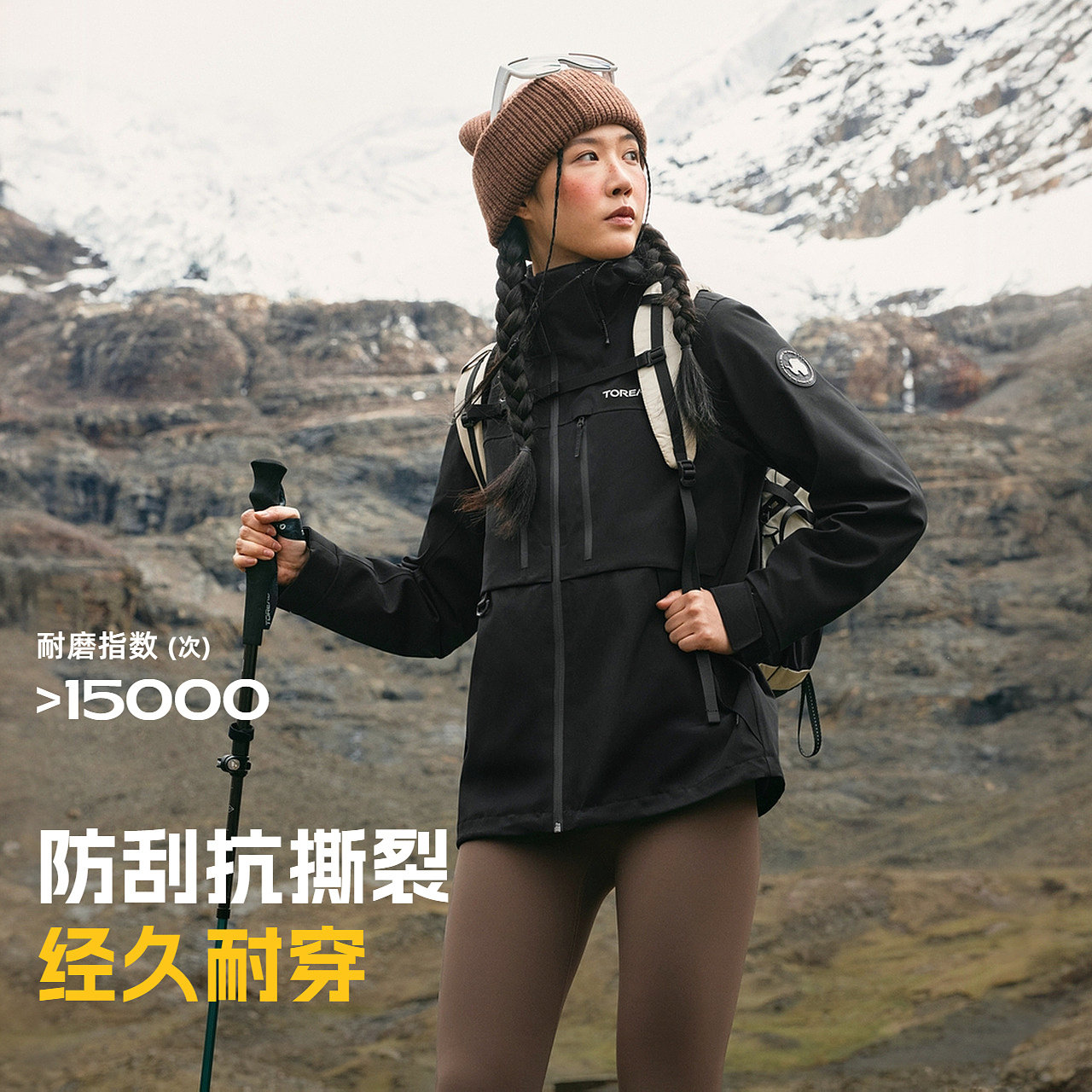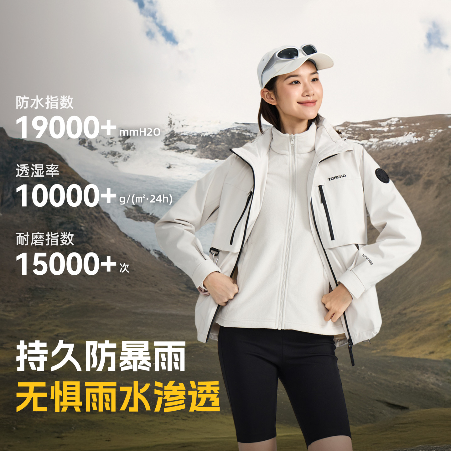 【极光Hyper】探路者冲锋衣男户外登山防水硬壳三合一好看外套女