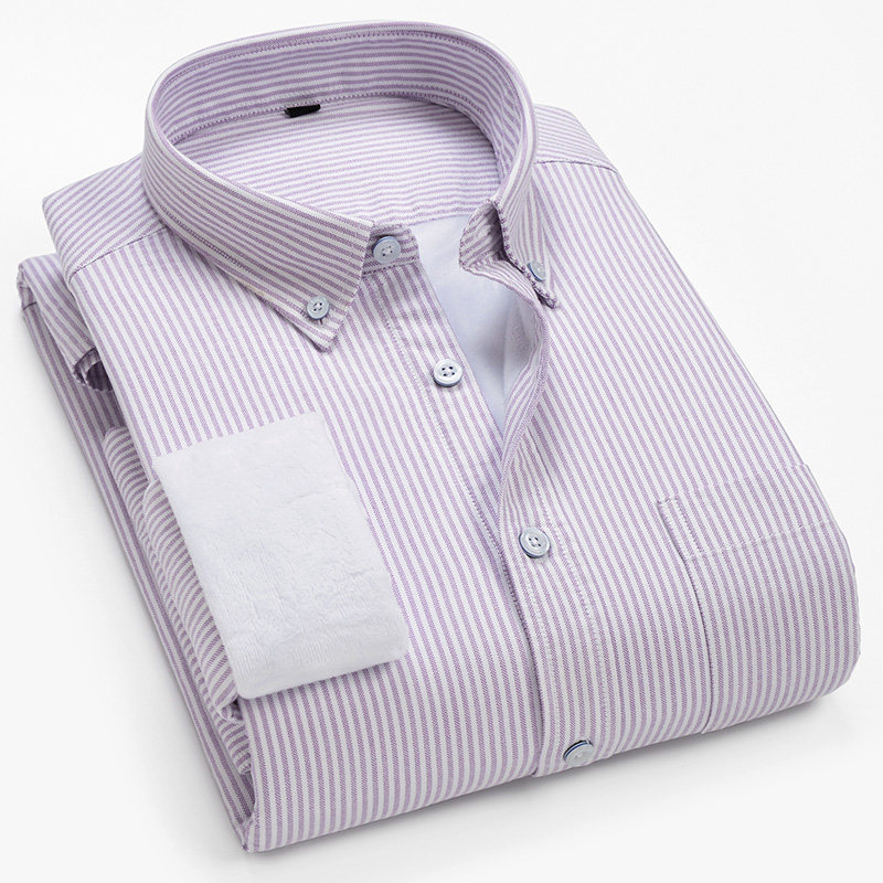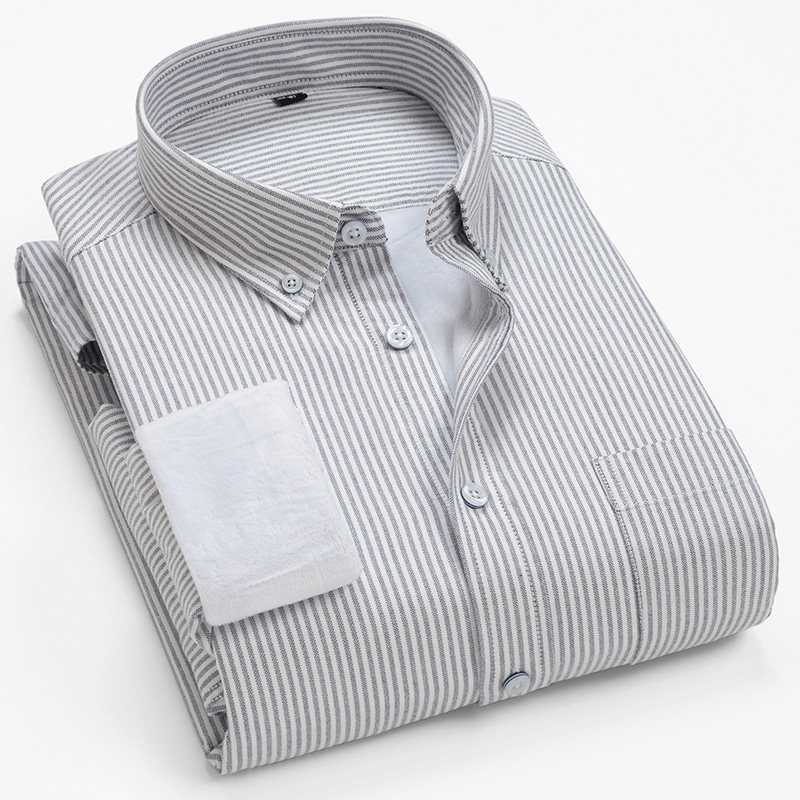 保暖衬衫男加绒加厚修身韩版休闲时尚潮条纹牛津纺衬衫男长袖衬衣