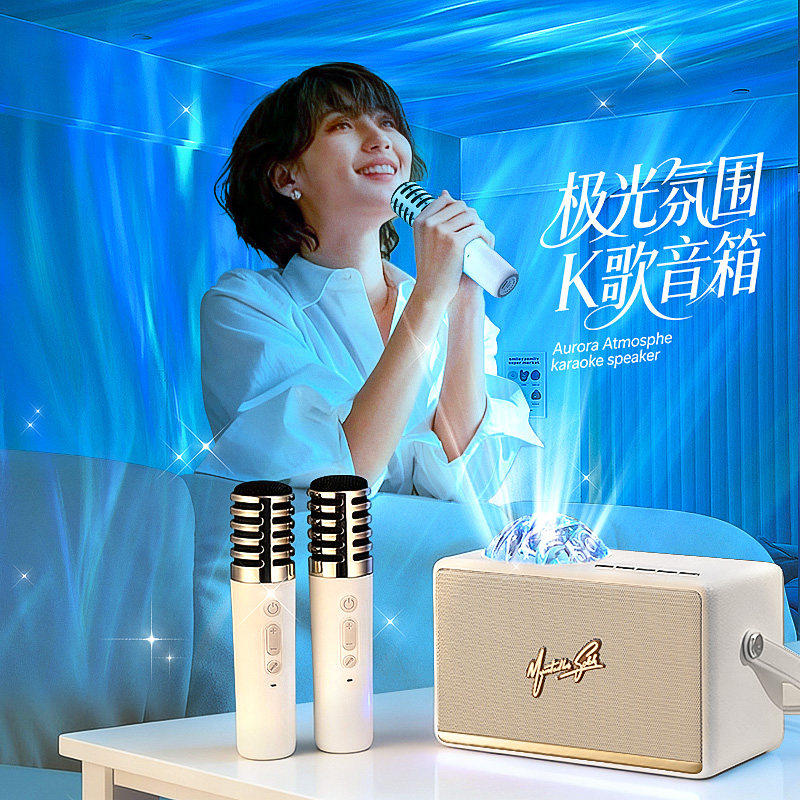 蓝牙音箱话筒k歌氛围投影星空灯麦克风一体机小音响生日礼物女生
