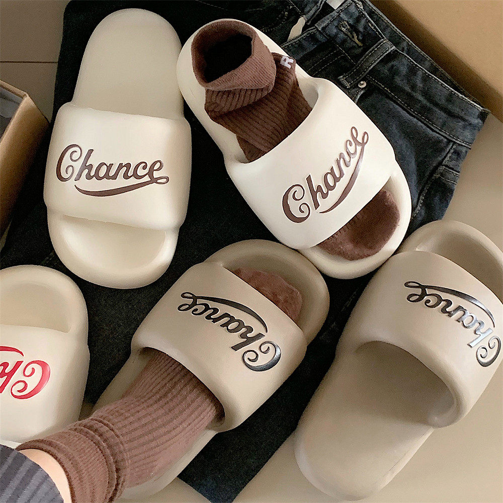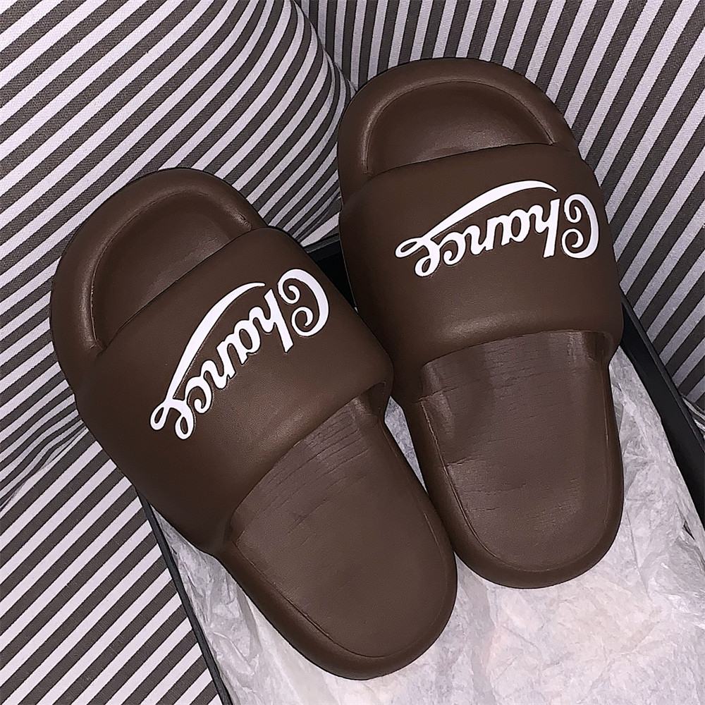 细细条休闲运动风百搭厚底情侣外穿拖鞋美式英文字母夏凉拖男女