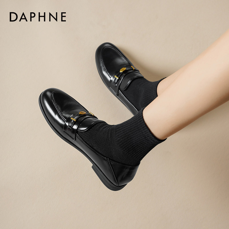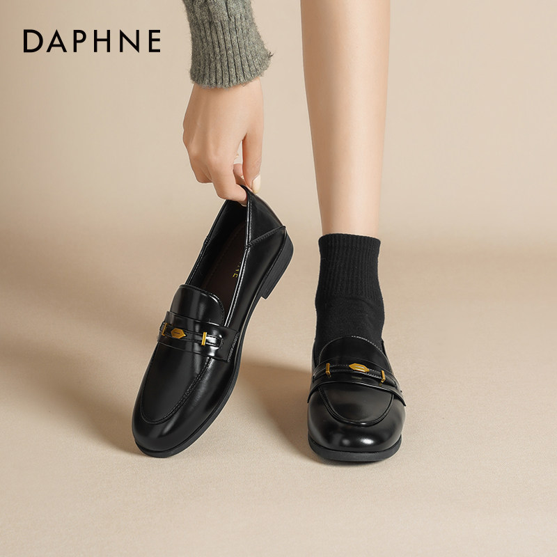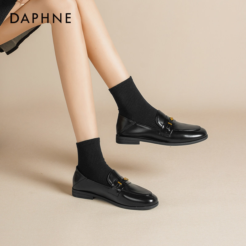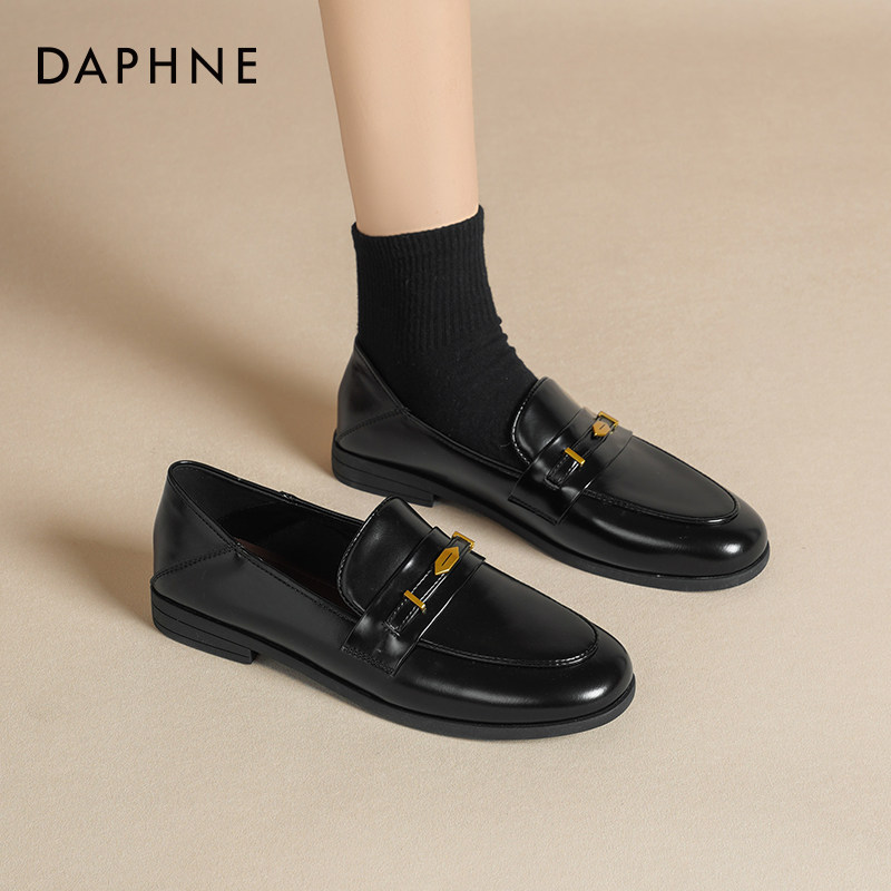 达芙妮黑色乐福鞋女2026新款春季女鞋浅口单鞋平底一脚蹬小皮鞋女