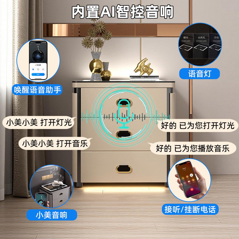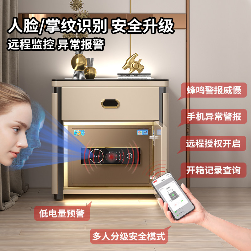 【送货上楼 语音对话】虎牌保险柜床头柜一体柜小型家用防盗保险箱智能床头指纹密码保险柜WIFI远程无线充新