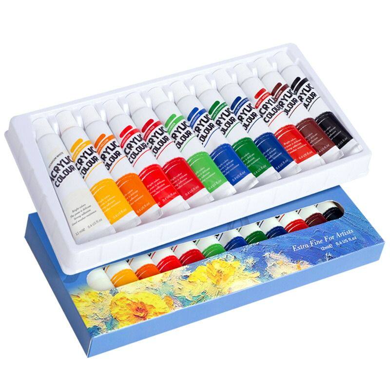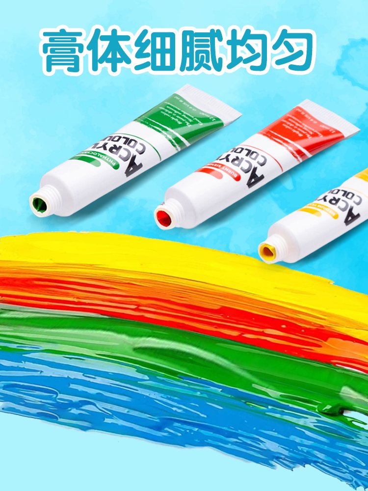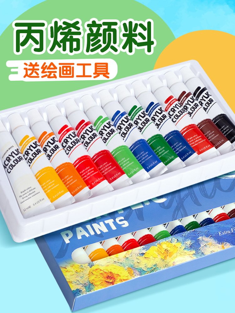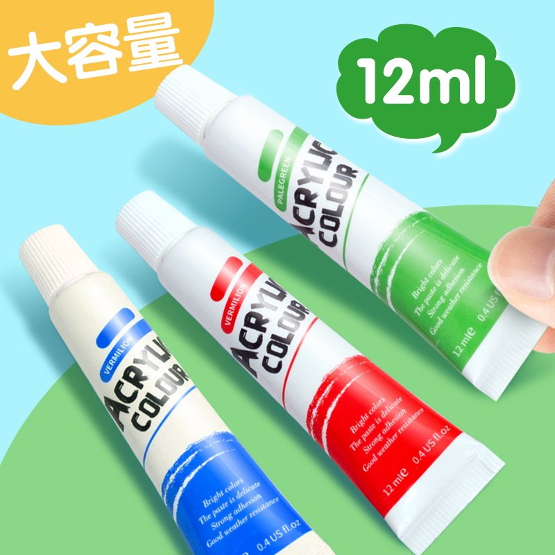 12色防水丙烯套装石膏娃娃幼儿园儿童初学者地摊手绘夜市画笔颜料