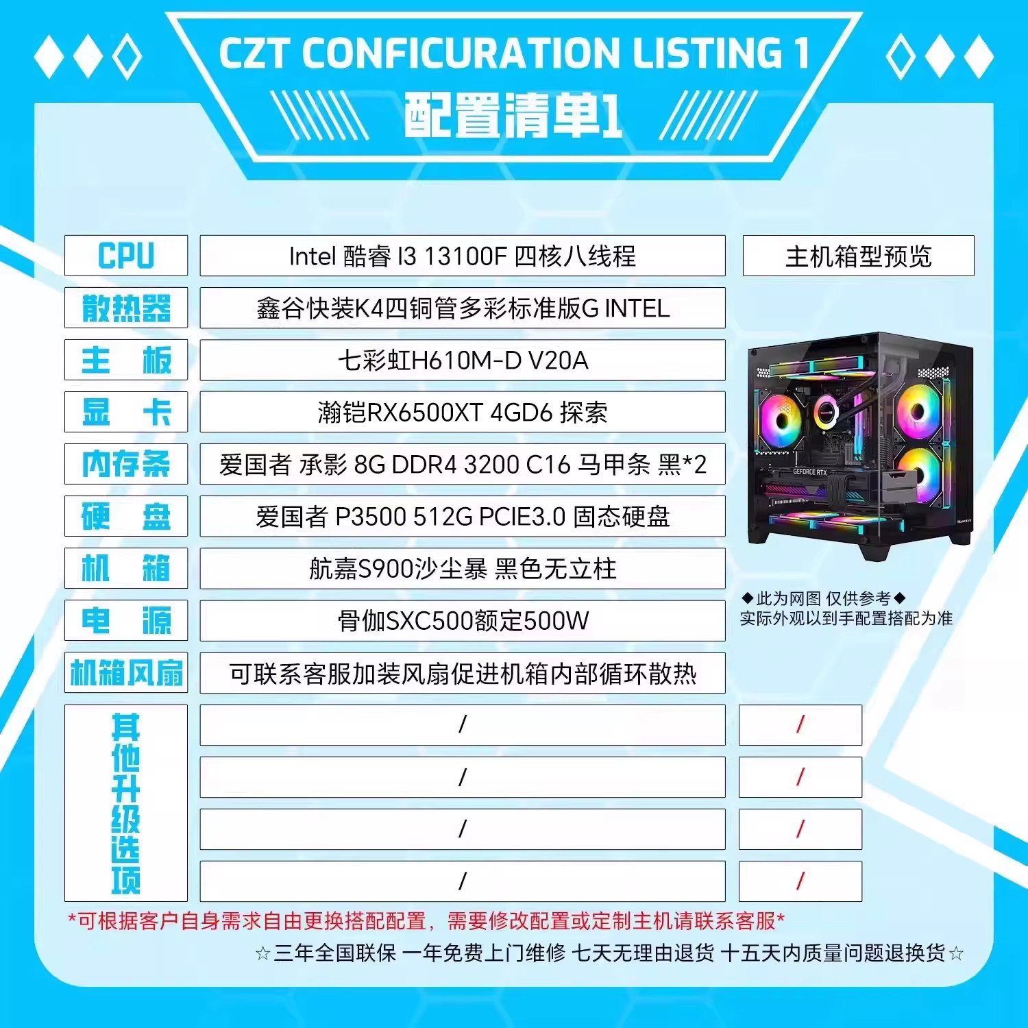 【操作台CZT精选】3129----3659价位 轻度游戏办公台式主机