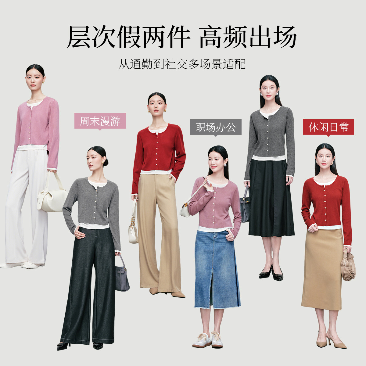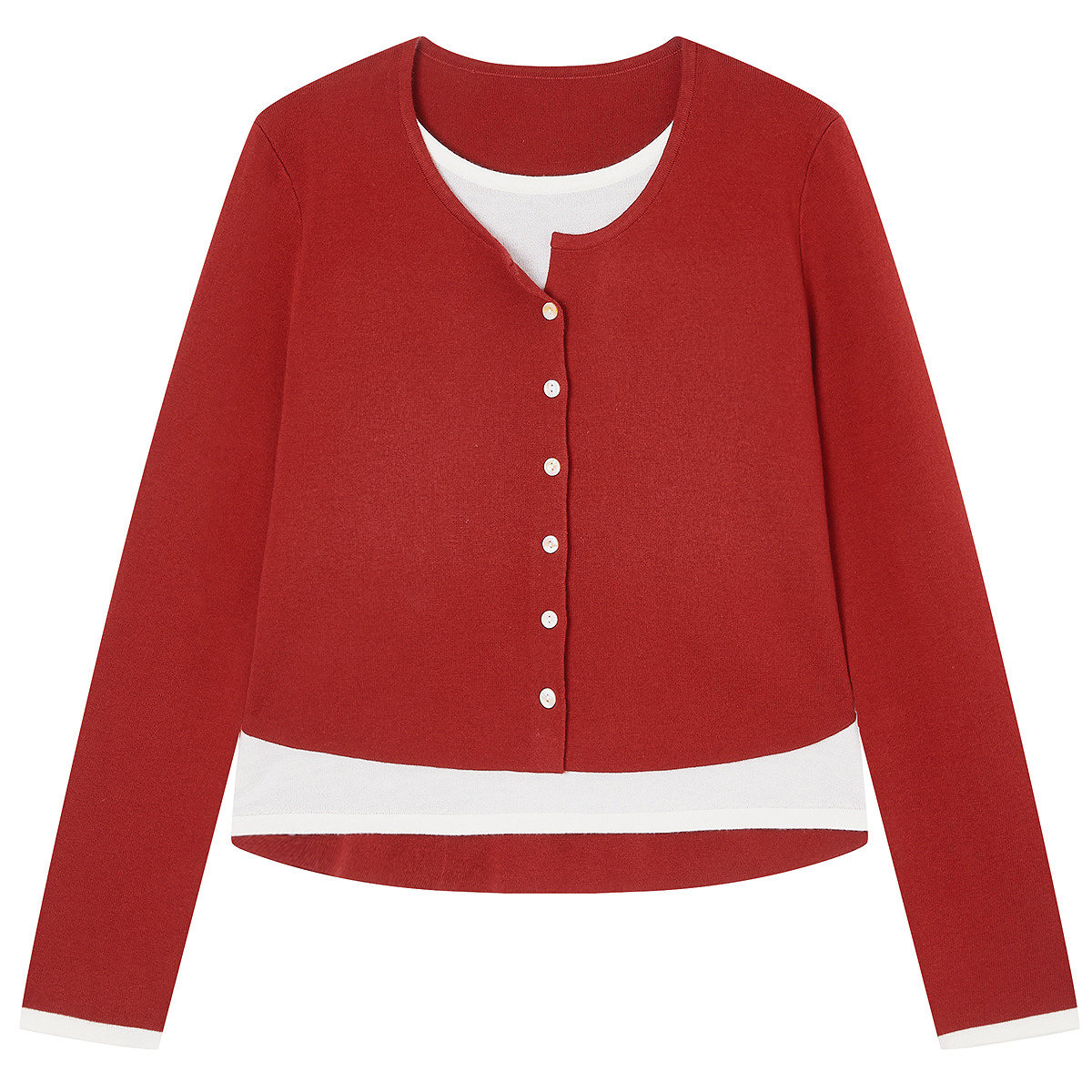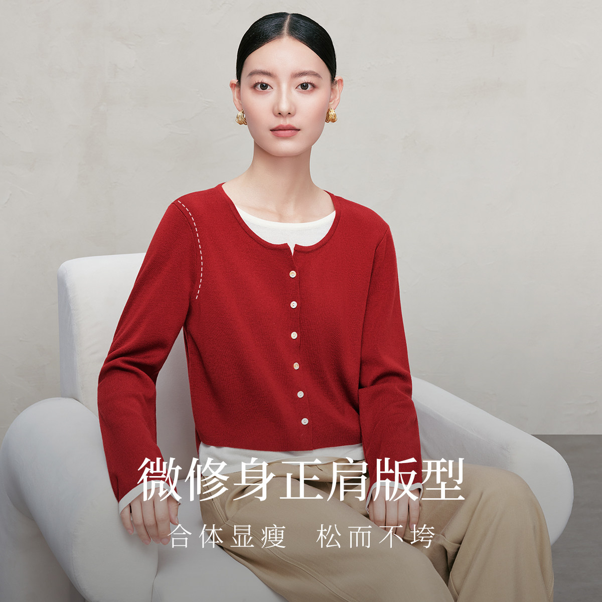 【新年战袍】菲妮迪针织衫2026春新款简约圆领减龄红色百搭上衣女