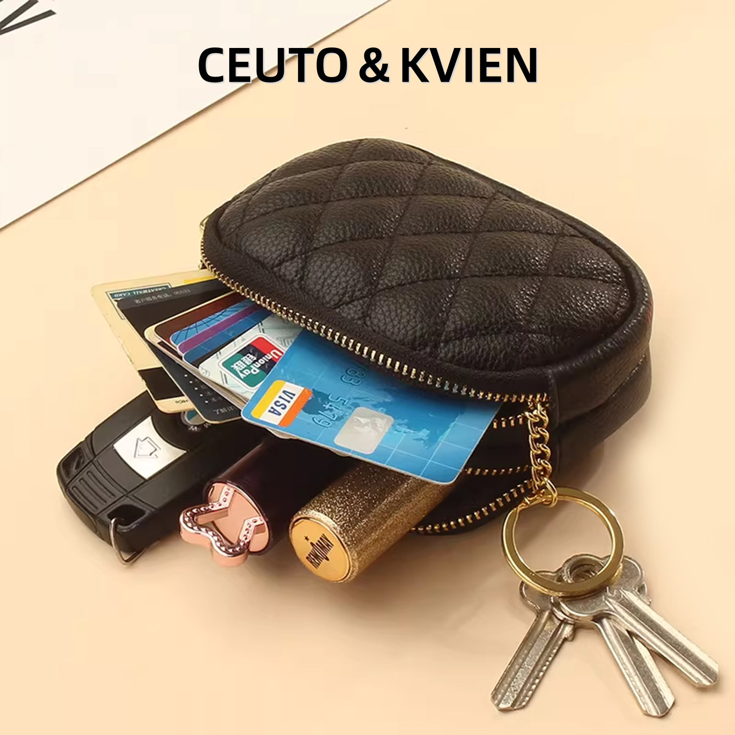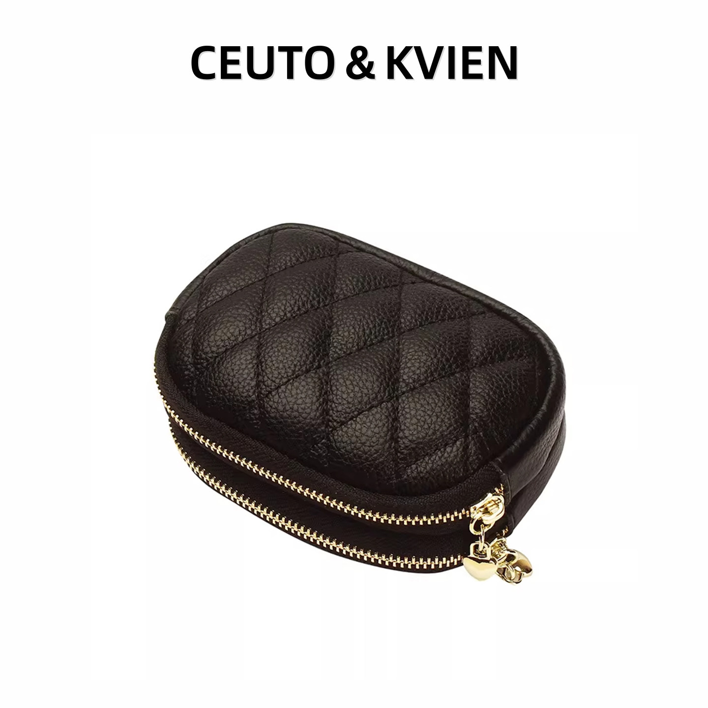 CEUTOKVIEN双层拉链零钱包女小巧便携小钱包圆形手包手拿小包钥匙