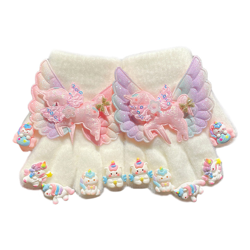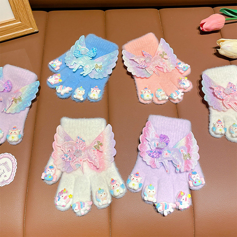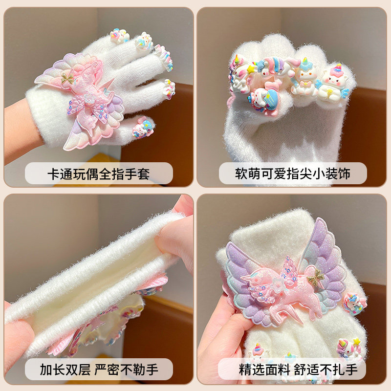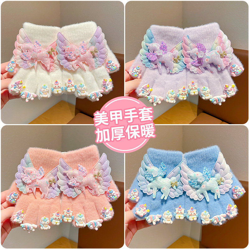 新款炫彩可爱儿童手套女童冬季防寒五指套学生保暖分指毛绒美甲