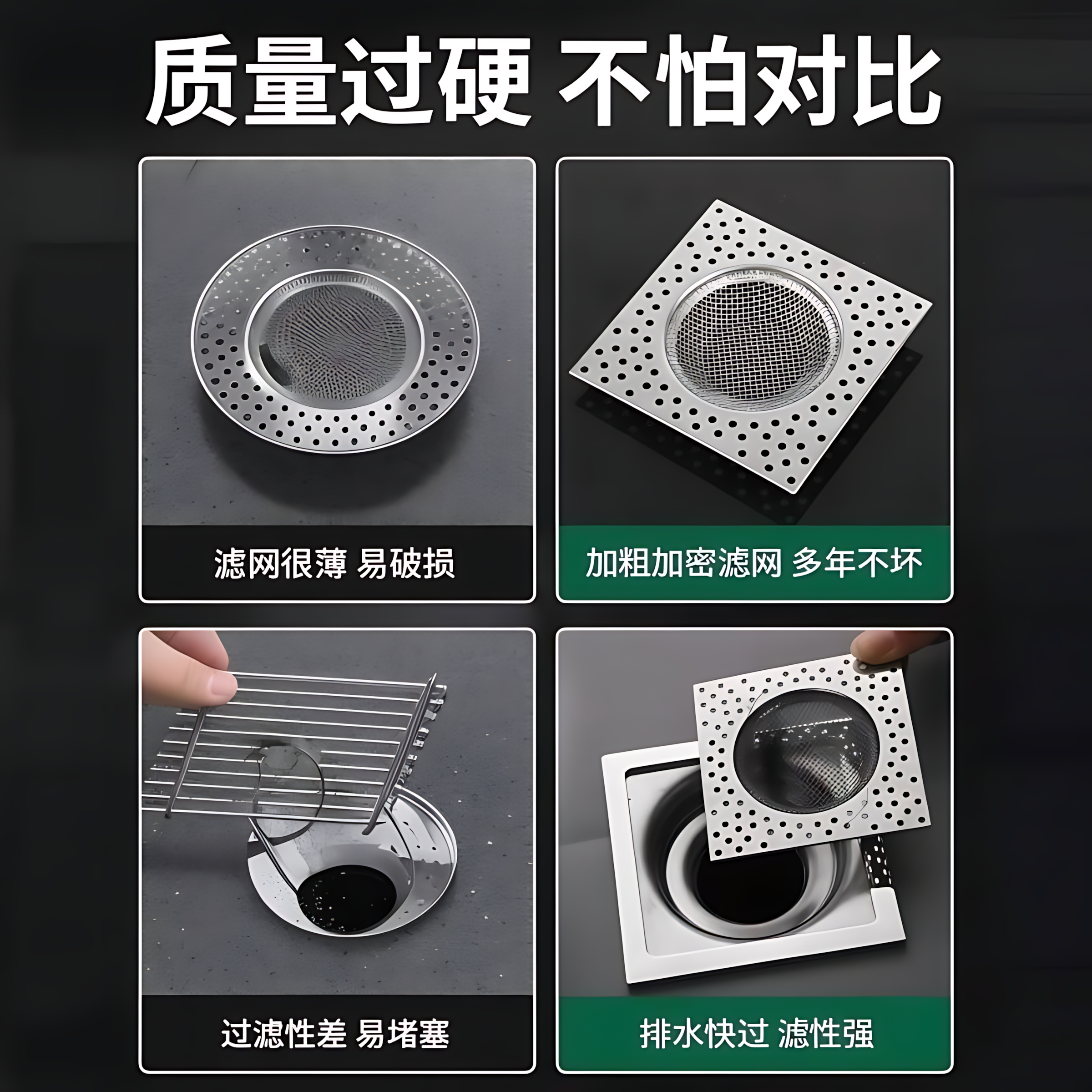 不锈钢地漏过滤网浴室下水道地漏网防堵塞防头发防虫洗手盆过滤器