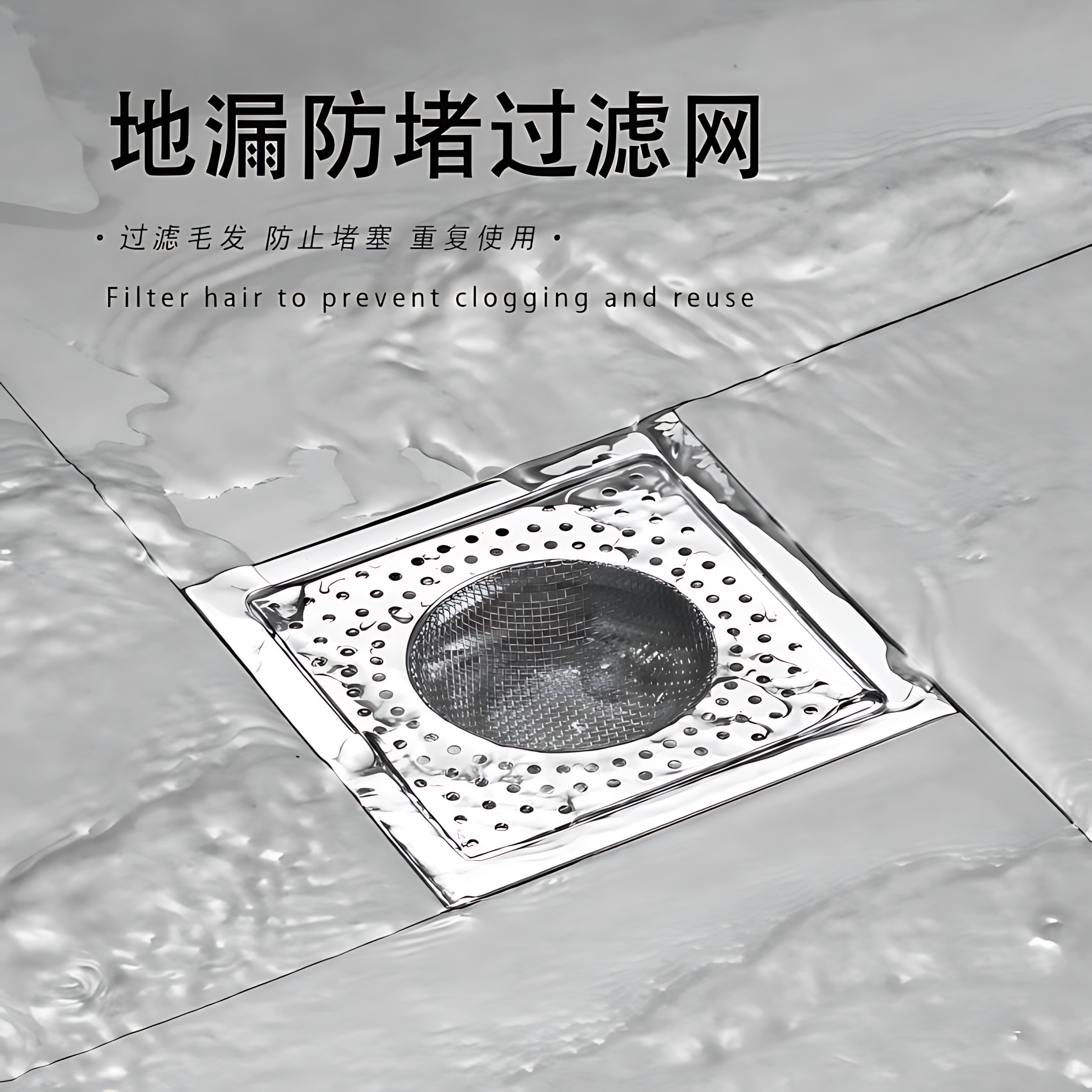 不锈钢地漏过滤网方形厕所地漏毛发过滤网防堵塞头发卫生间地漏盖