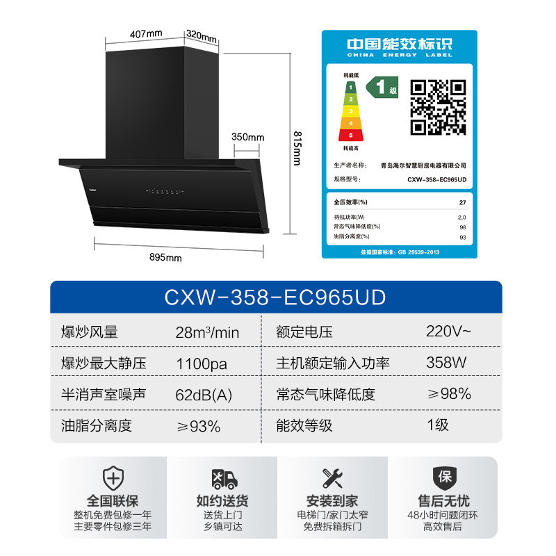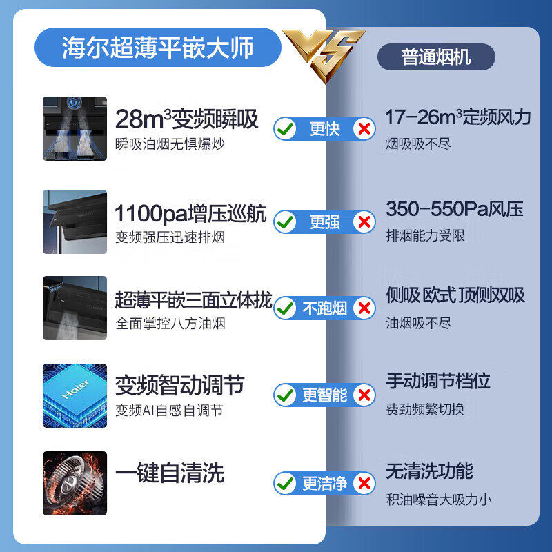 海尔28立方米变频抽油烟机厨房家用顶侧双吸自清洗大吸力吸油烟机