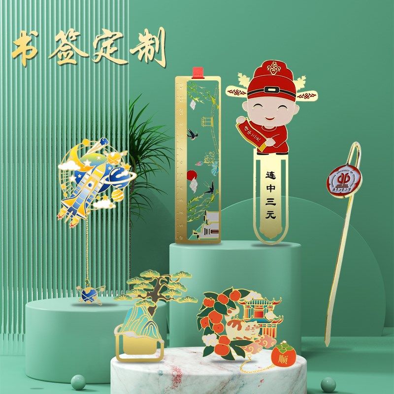 工厂定制书签金属黄铜镂空团扇定做古典中国风文创博物院学生礼品
