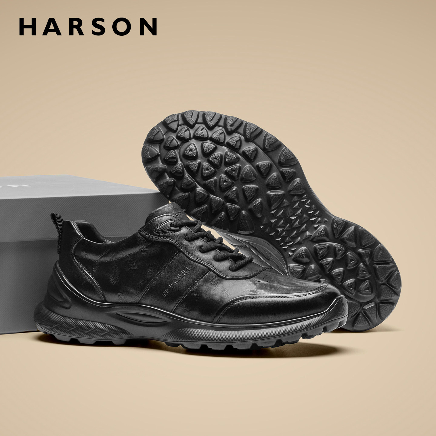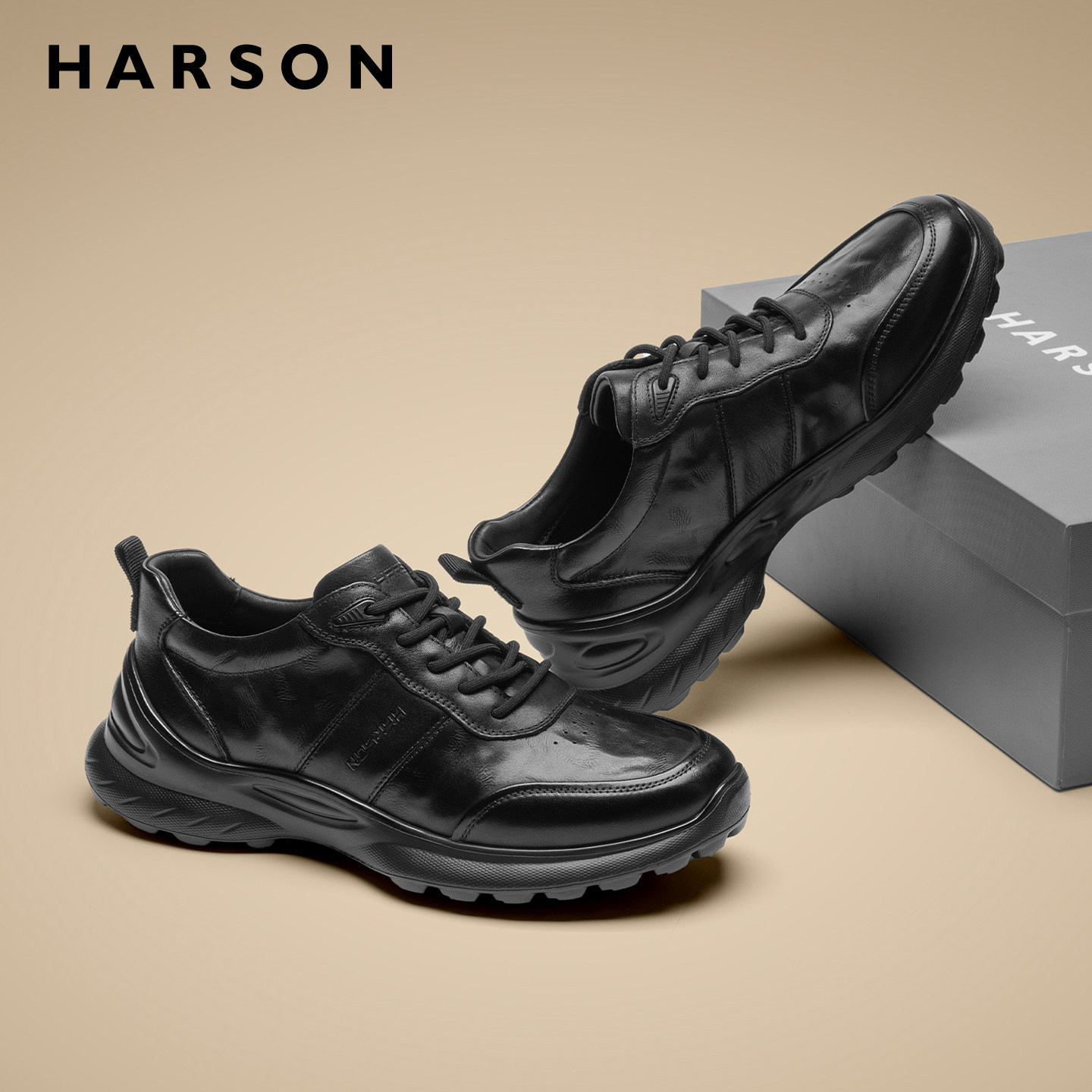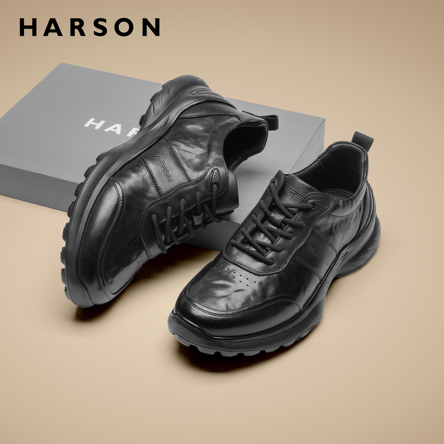 哈森男鞋黑色厚底鞋男士皮鞋男2026新款商务休闲鞋真皮运动鞋子男