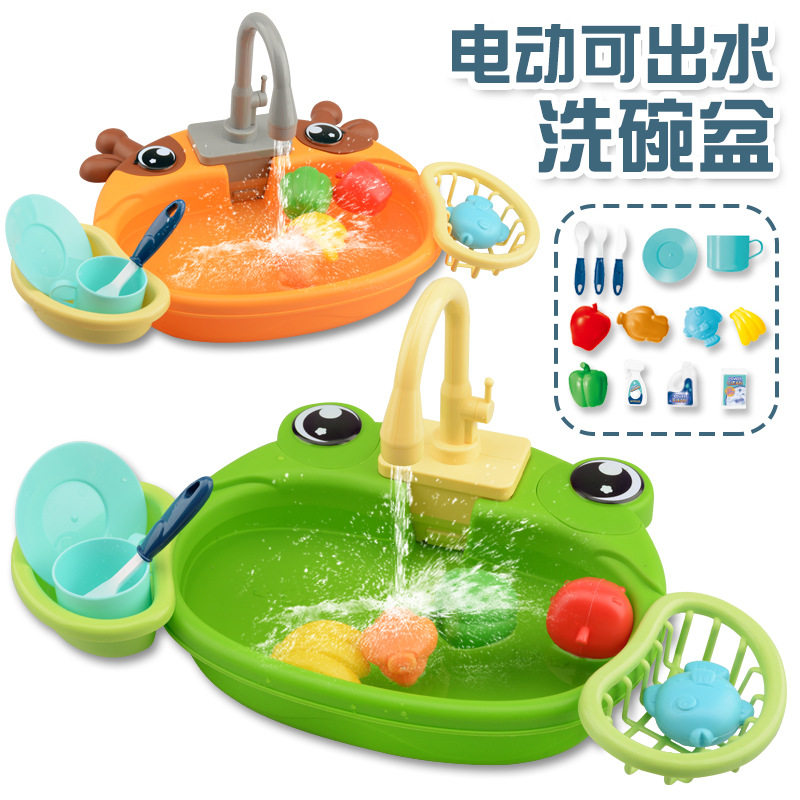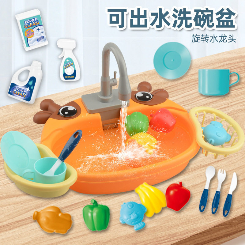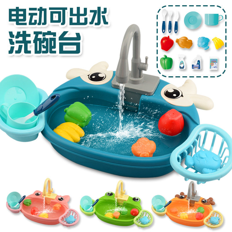 儿童洗碗台厨房玩具电动可收纳洗碗盆套装过家家亲子互动益智戏水