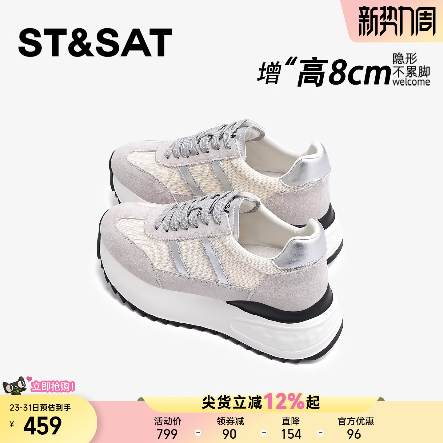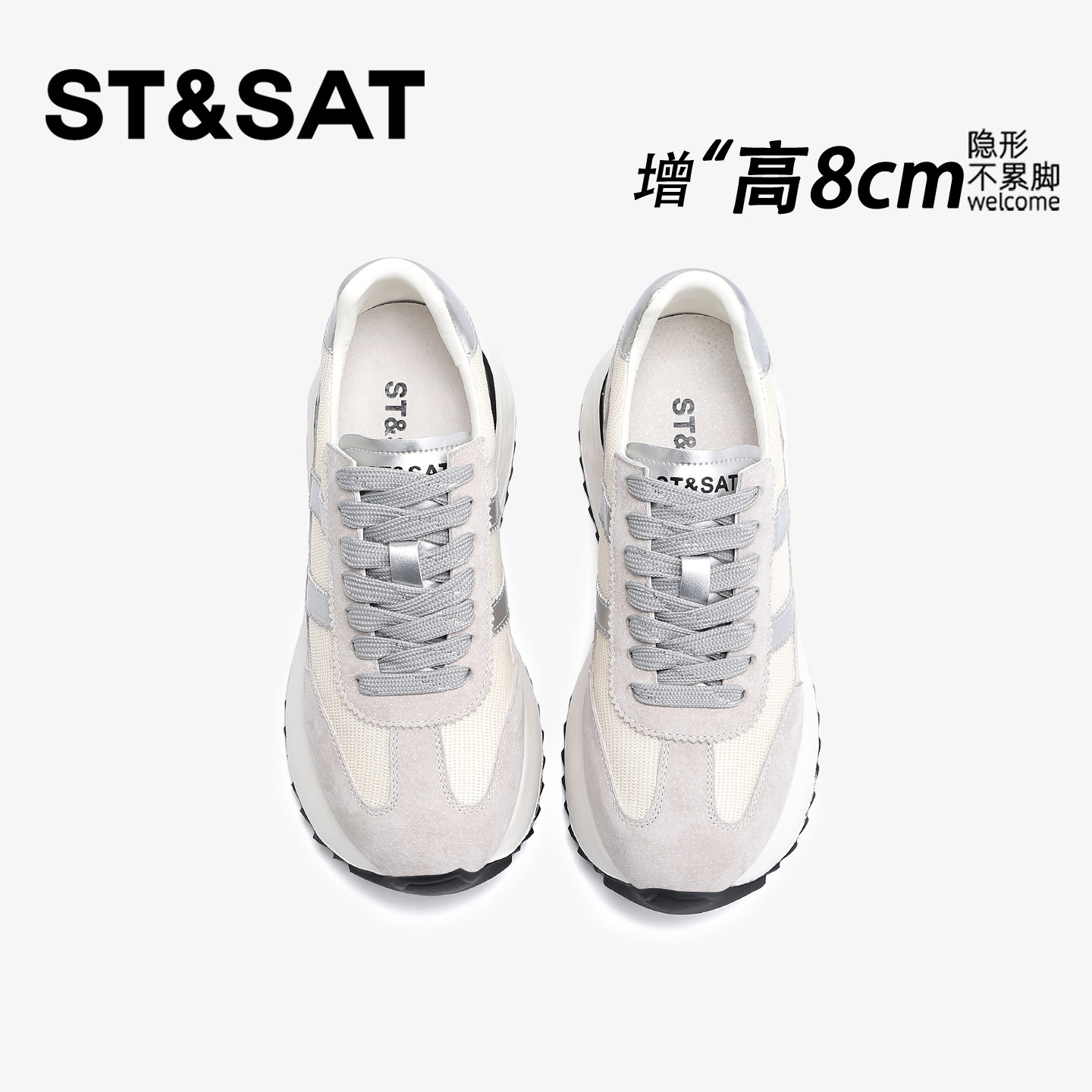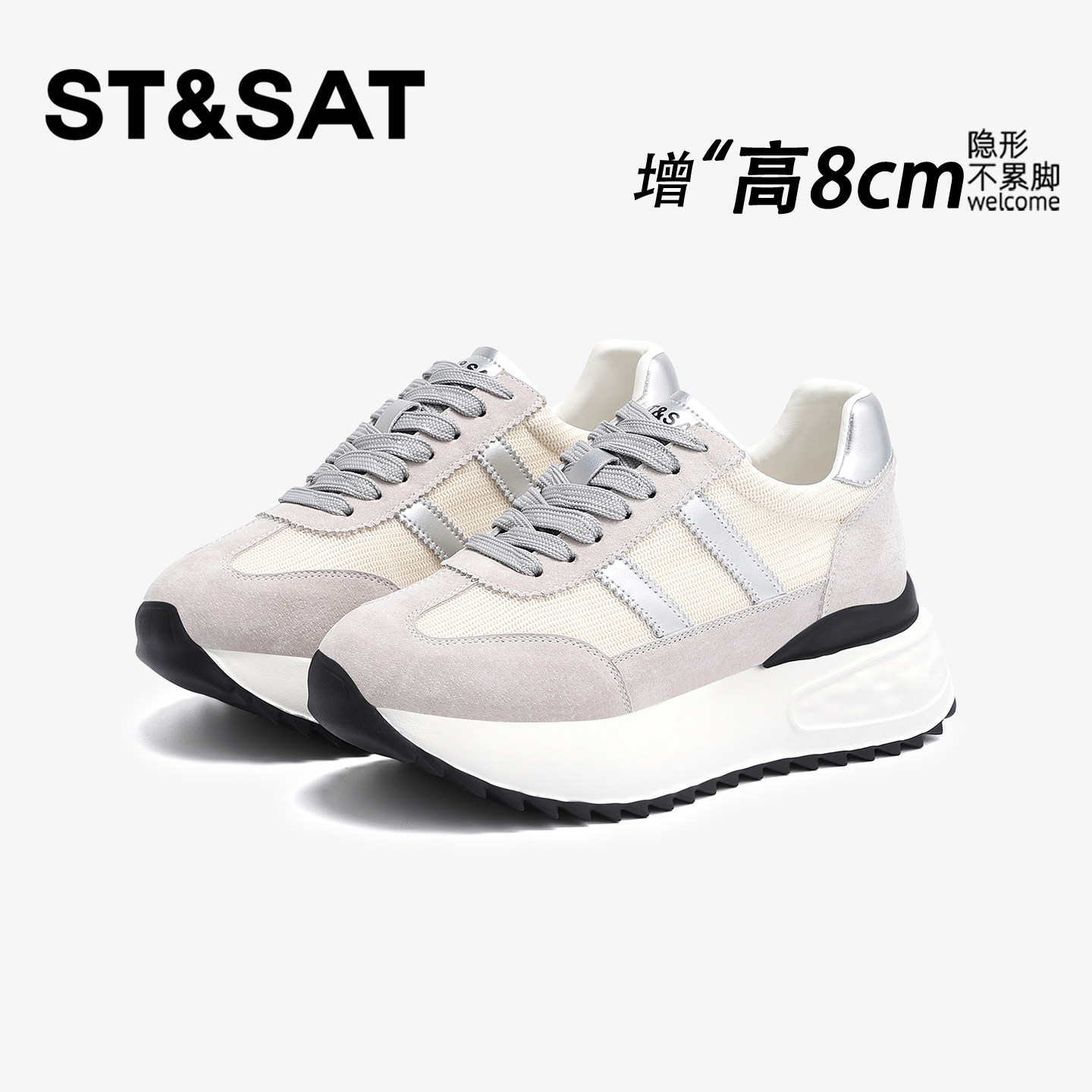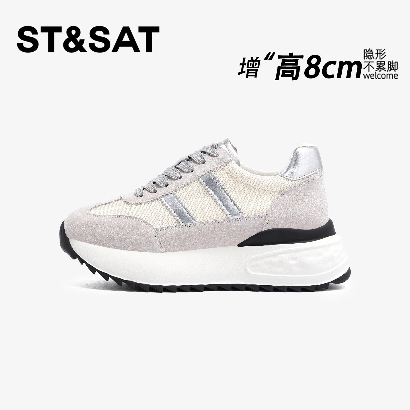 星期六8CM轻便隐形内增高德训鞋女厚底百搭休闲运动舒适阿甘女鞋