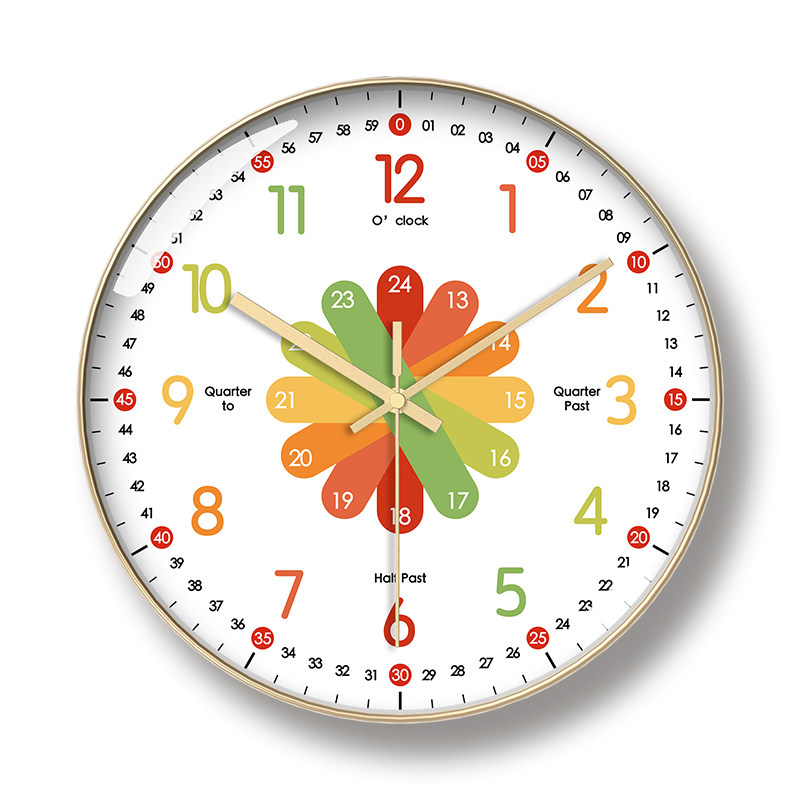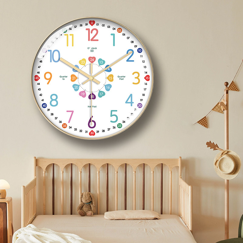 早教学习静音挂钟客厅家用卧室钟表学生儿童房彩虹挂墙免打孔时钟