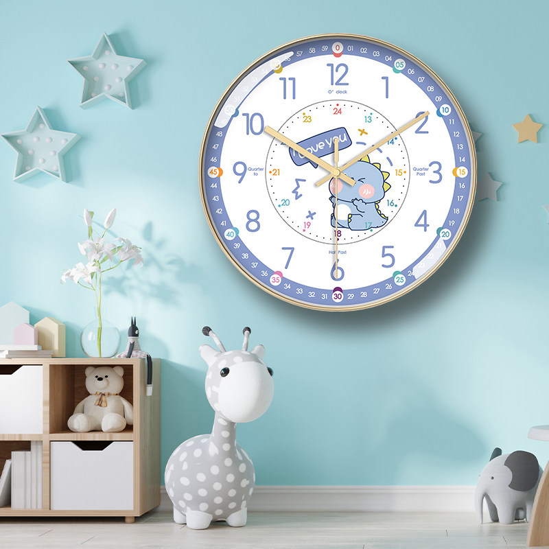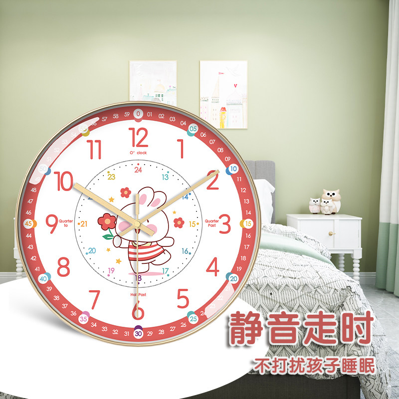 卡通挂钟现代简约客厅钟表静音早教时钟卧室家用石英钟教室儿童房