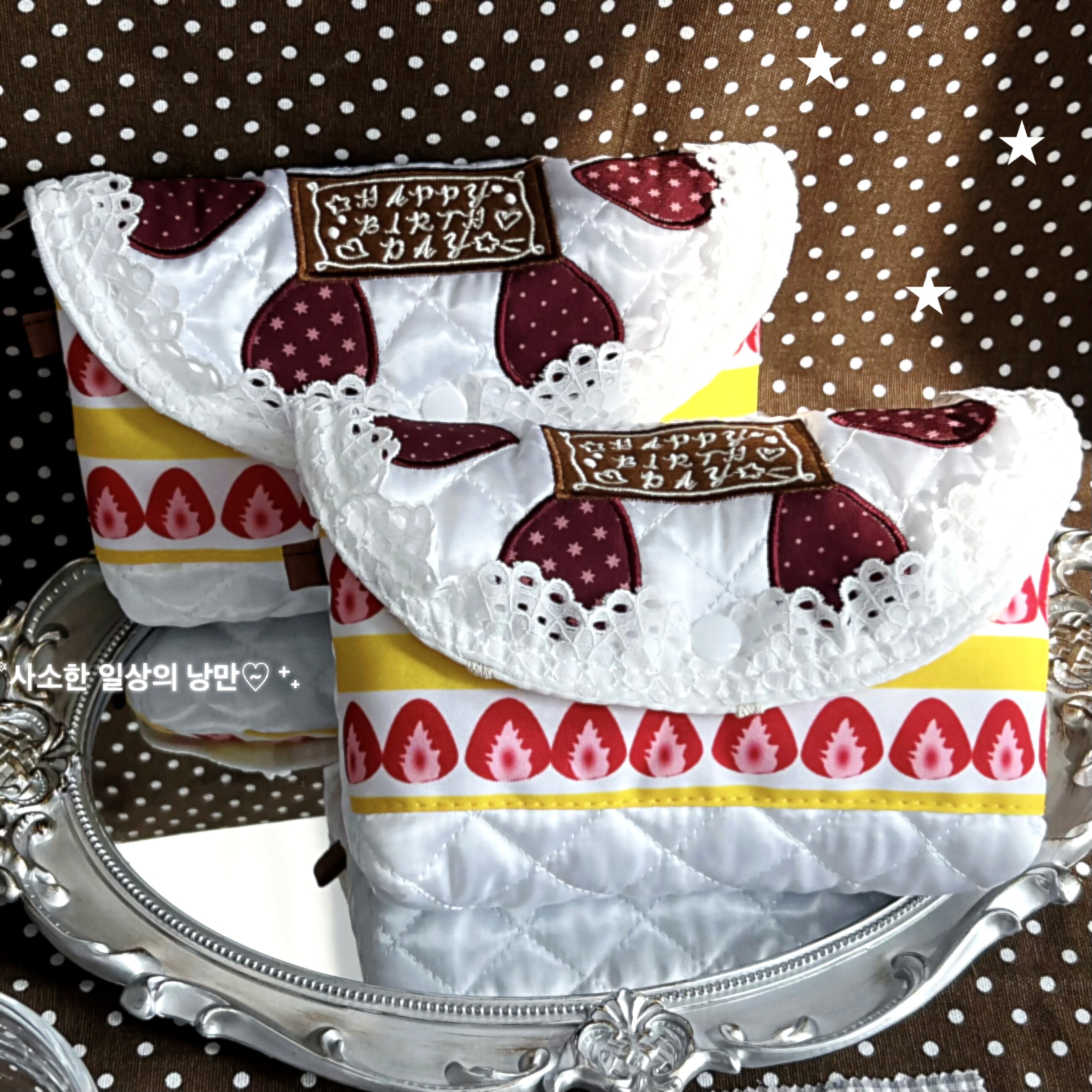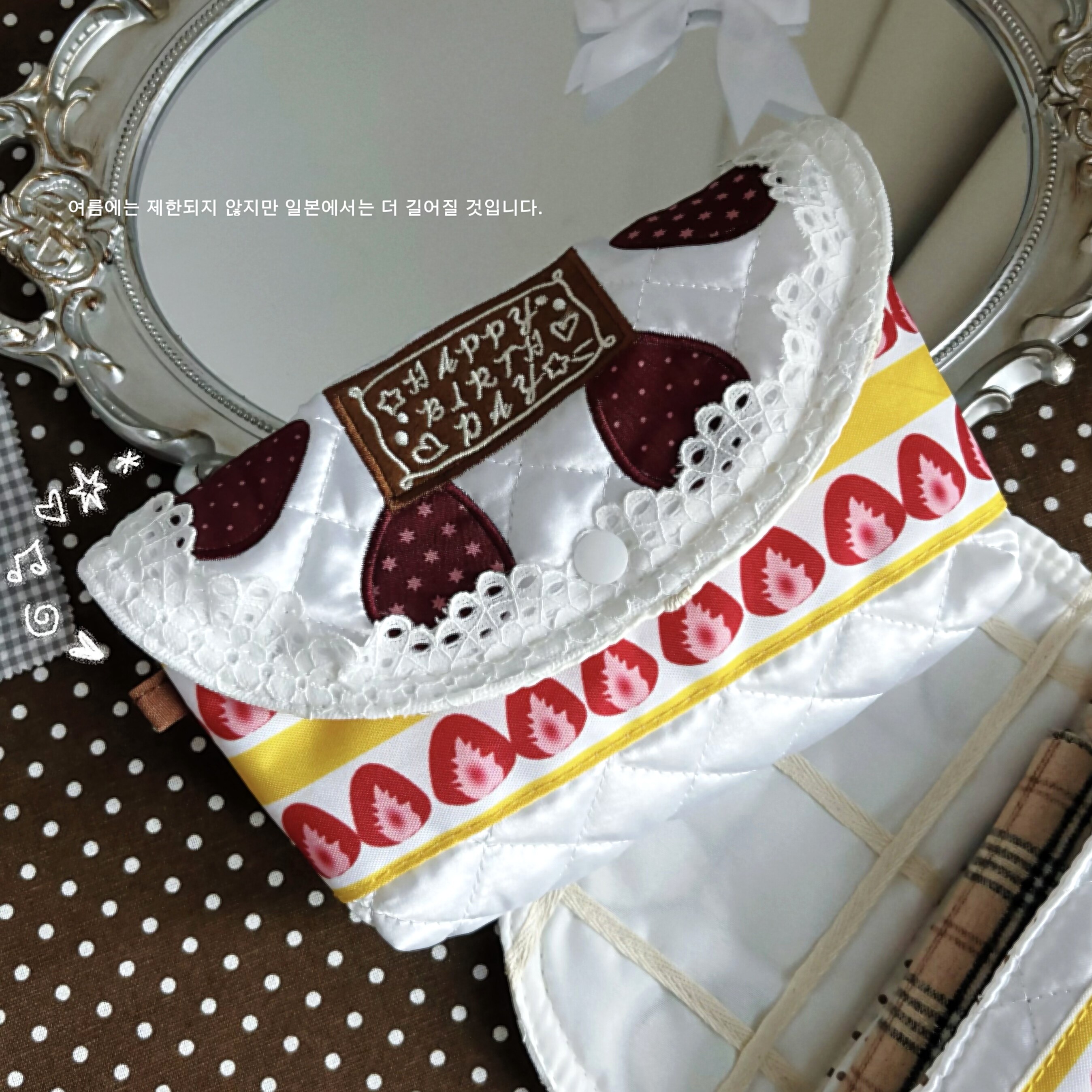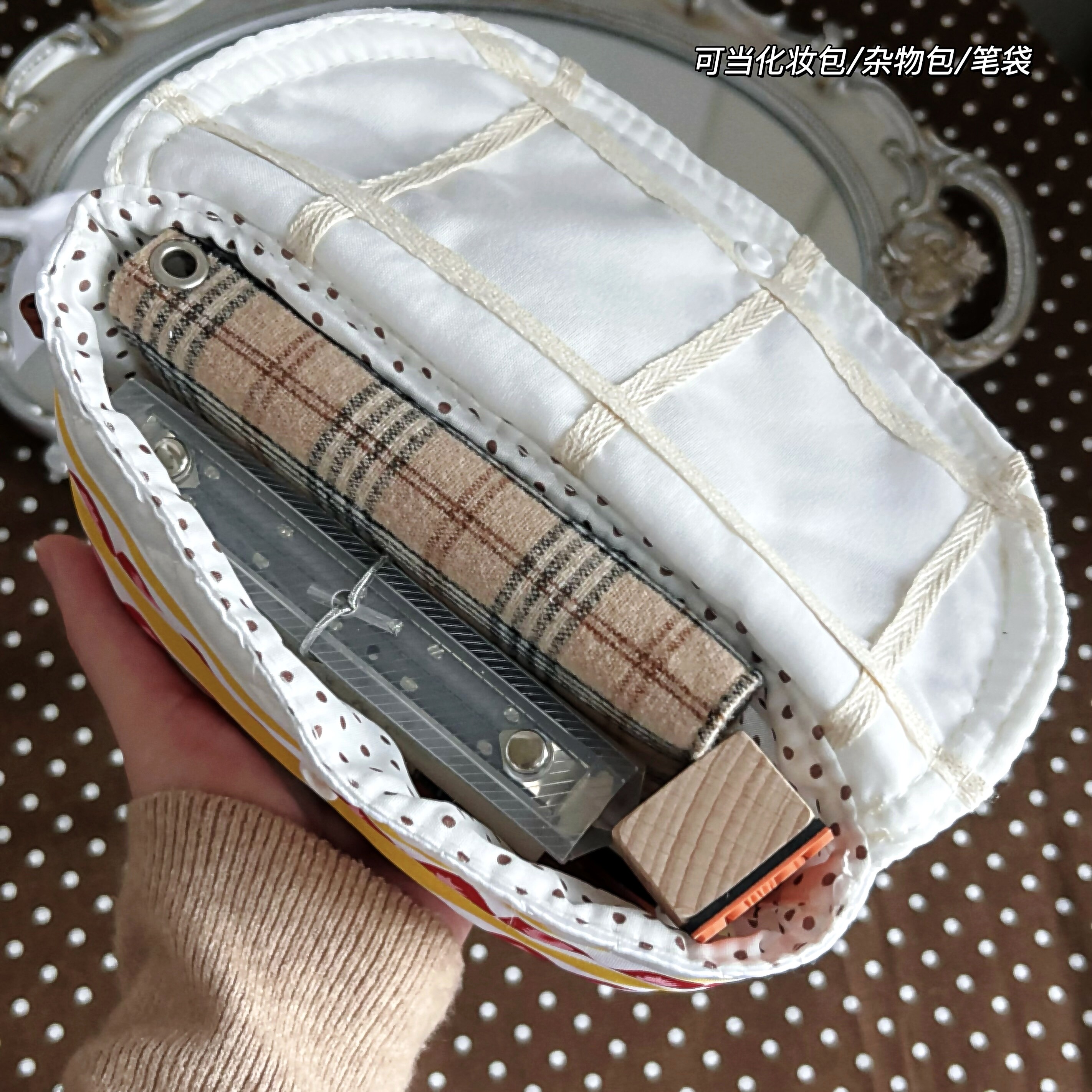 韩系复古草莓蛋糕收纳袋ins风高颜值手账整理包包蕾丝波点化妆包