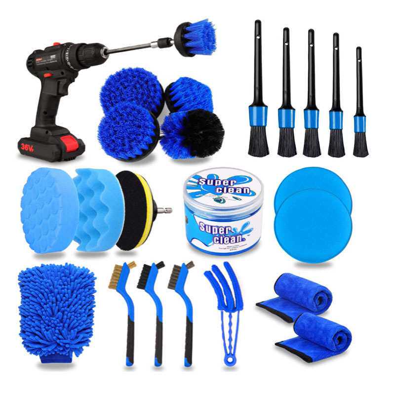 跨境爆款24件套汽车电钻清洁刷洗车轮胎轮毂内饰清洁刷洗车刷套装
