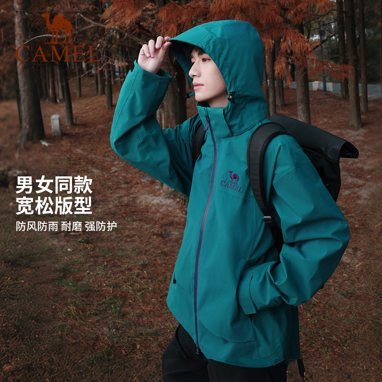 骆驼女装单层冲锋衣2025秋冬新款户外防风防水连帽立领男女款外套