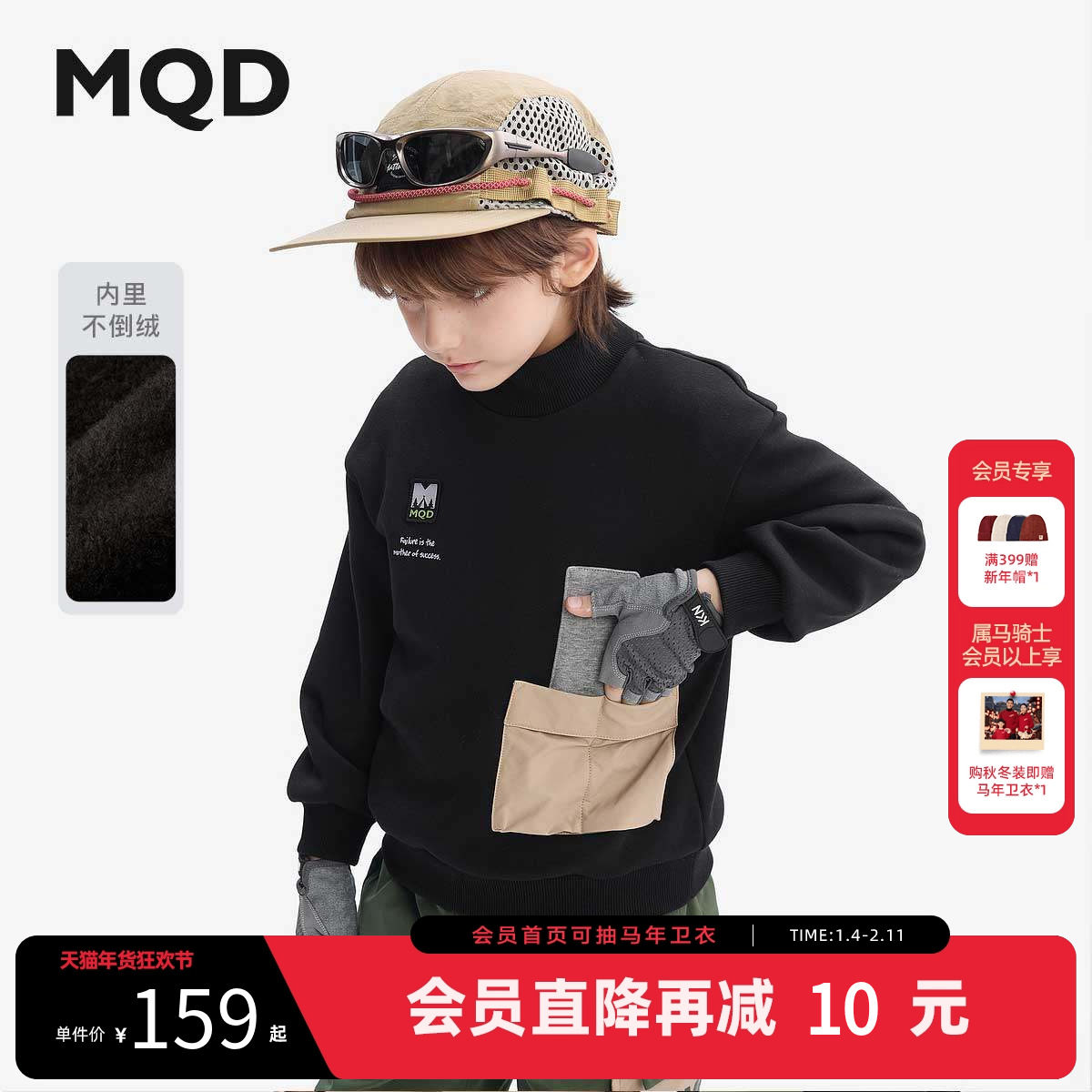 MQD童装男童加绒卫衣2025秋冬新款儿童半高领保暖上衣潮酷外套