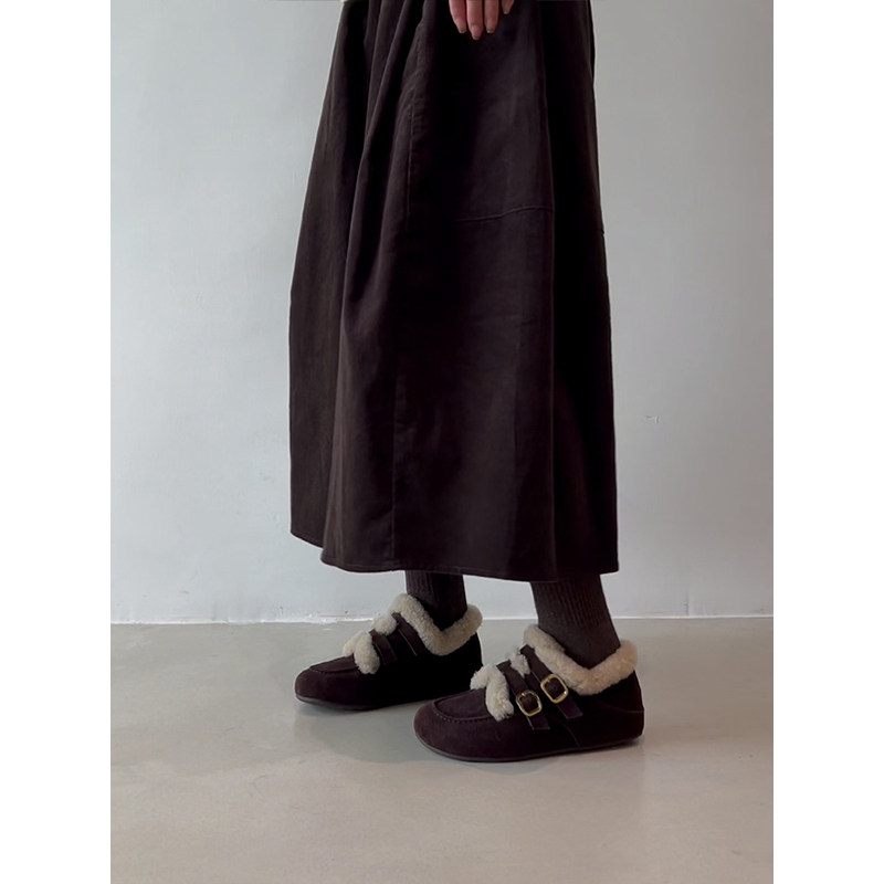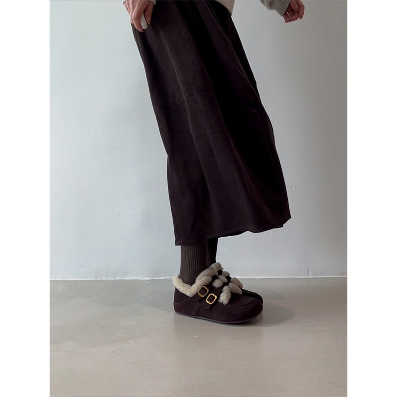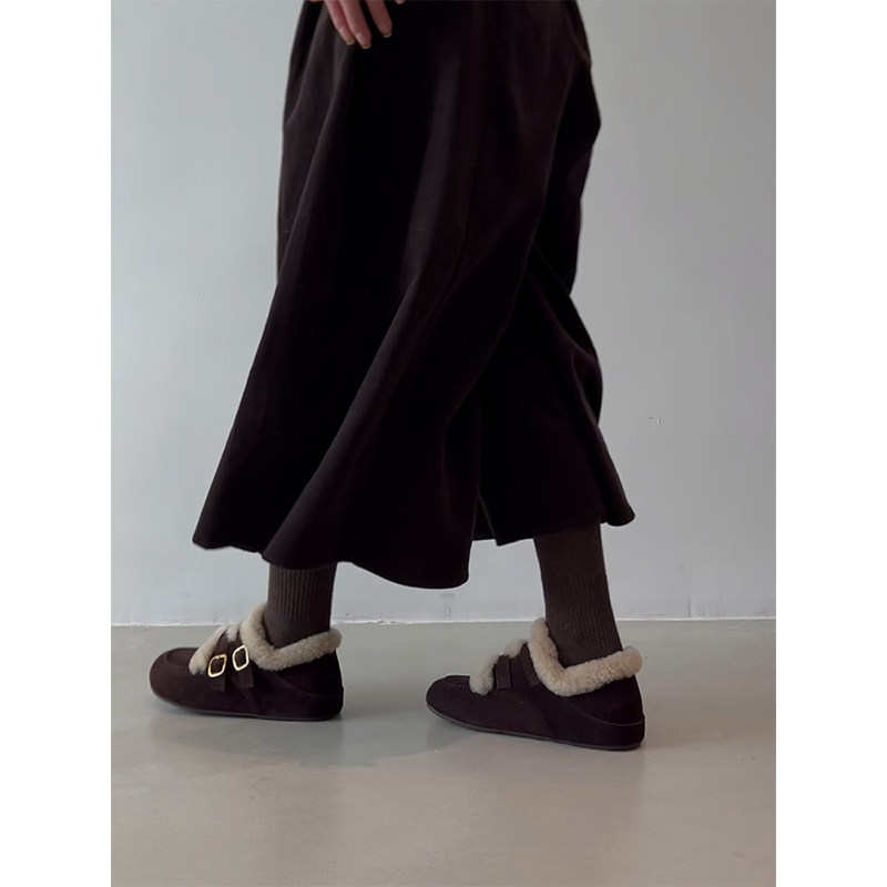 TATAFOCUS~加绒毛毛鞋韩版圆头皮带扣2025冬季新款勃肯鞋女35-28