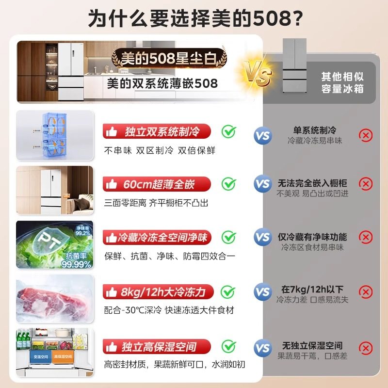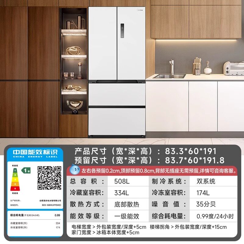 Midea/美的 BCD-508WUFPZM(E) 新款508超薄双系统法式M60零嵌冰箱