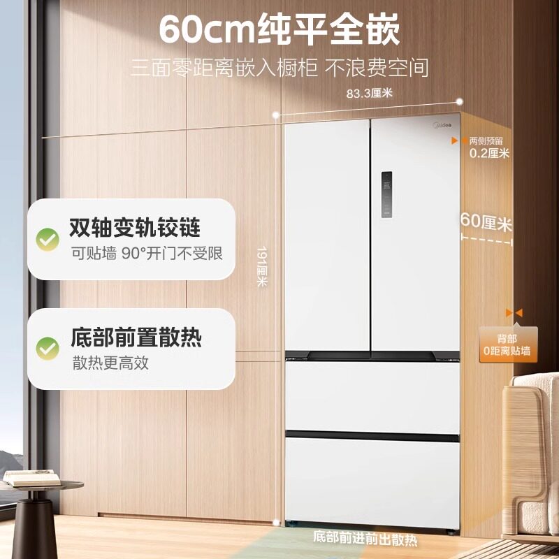 双系统|美的M60小机皇520超薄零嵌入式冰箱家用法式多门四门双开