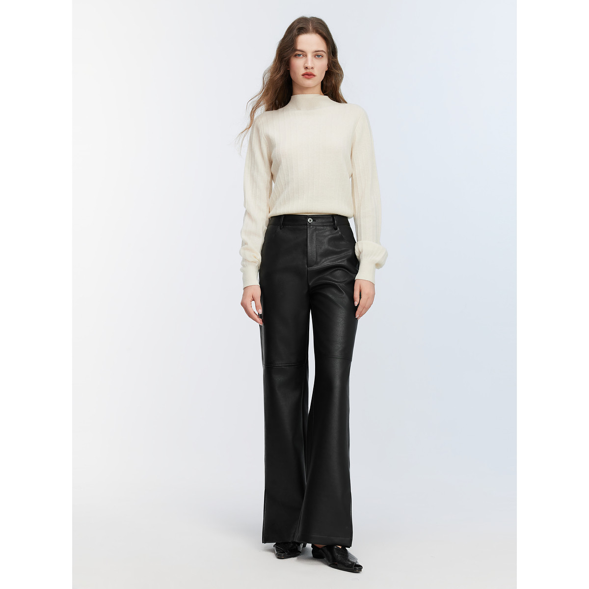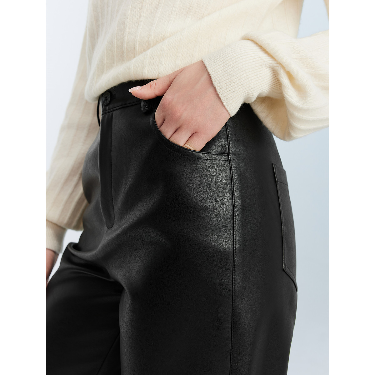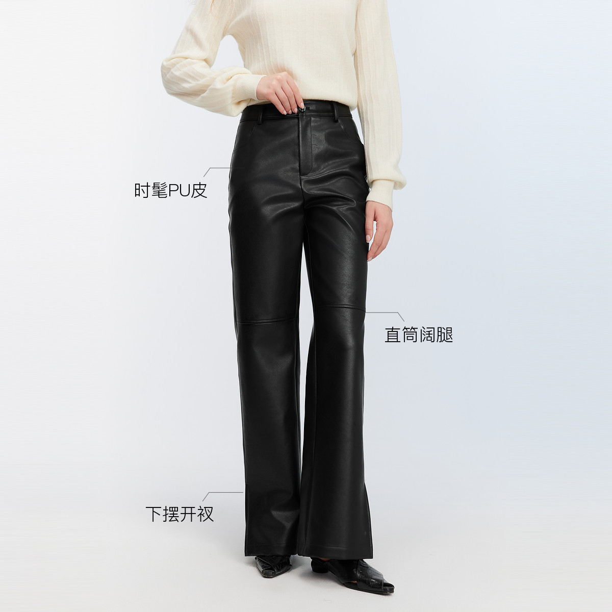 【商场同款】ELLE黑色高腰气质皮裤女2025秋季新款时尚PU皮休闲裤