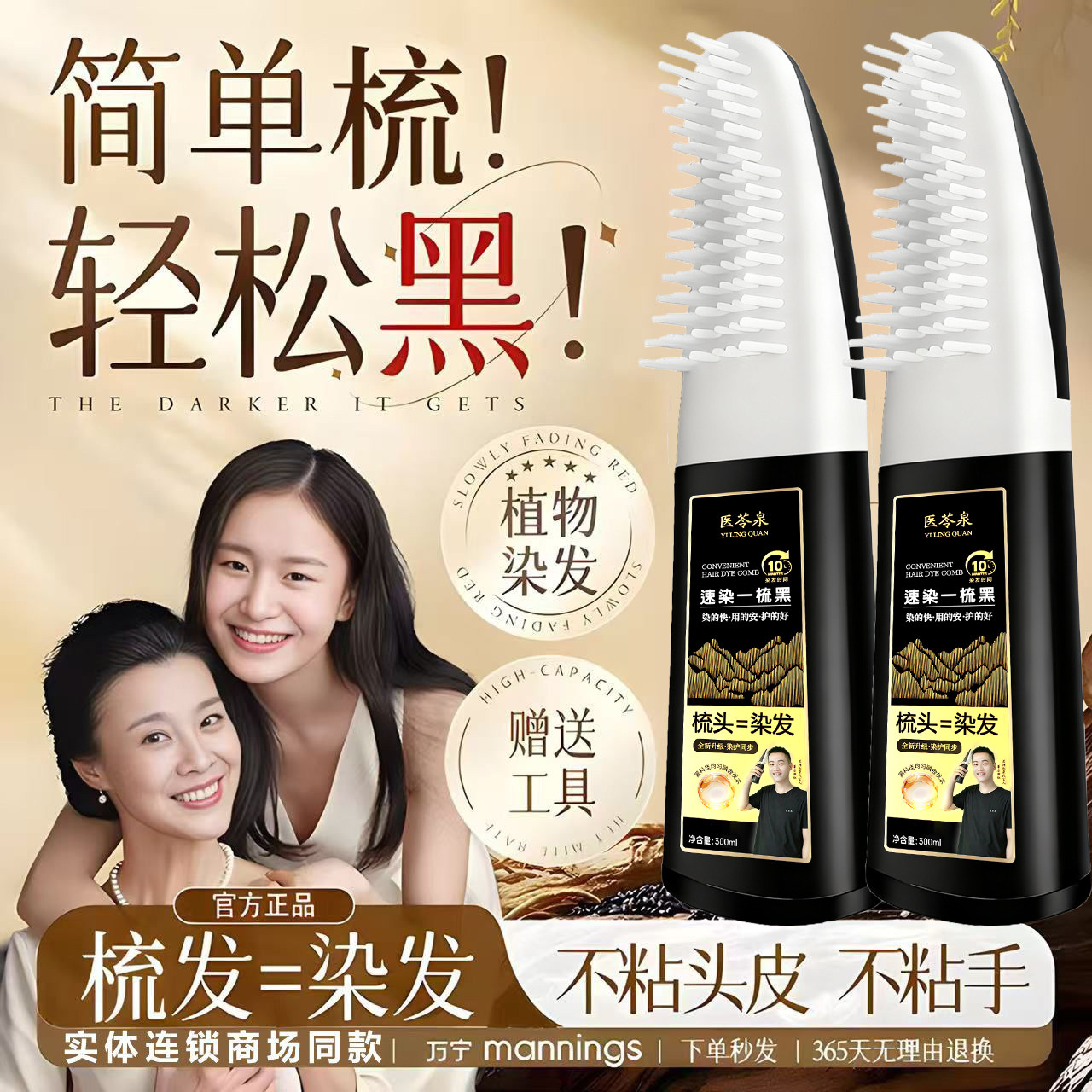 速染黑色中老年植物染发剂纯染膏不沾盖白发同仁堂染头发泡泡遮盖