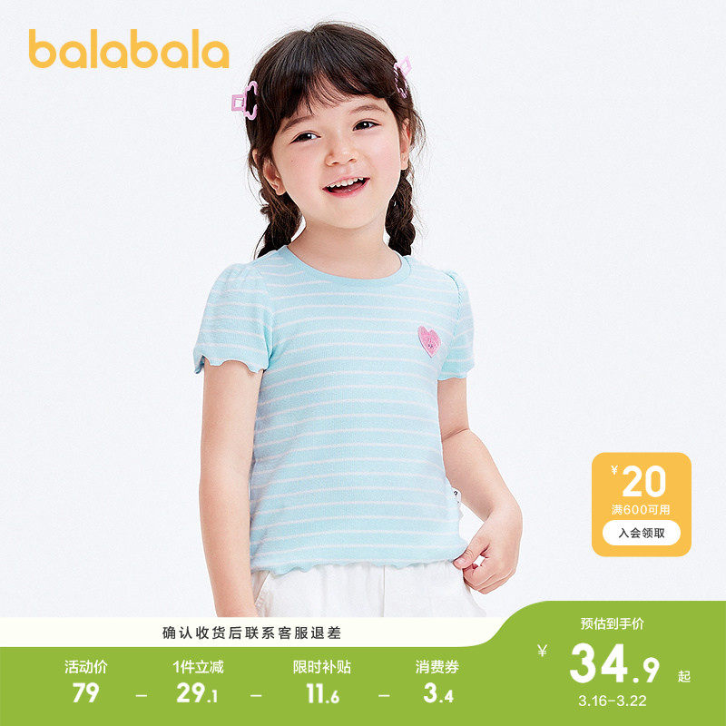 巴拉巴拉宝宝短袖t恤婴儿女童上衣轻薄新款夏装甜美时尚可爱清新