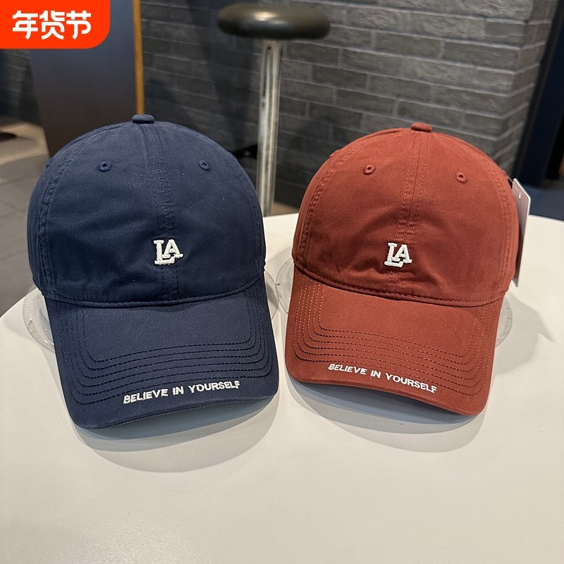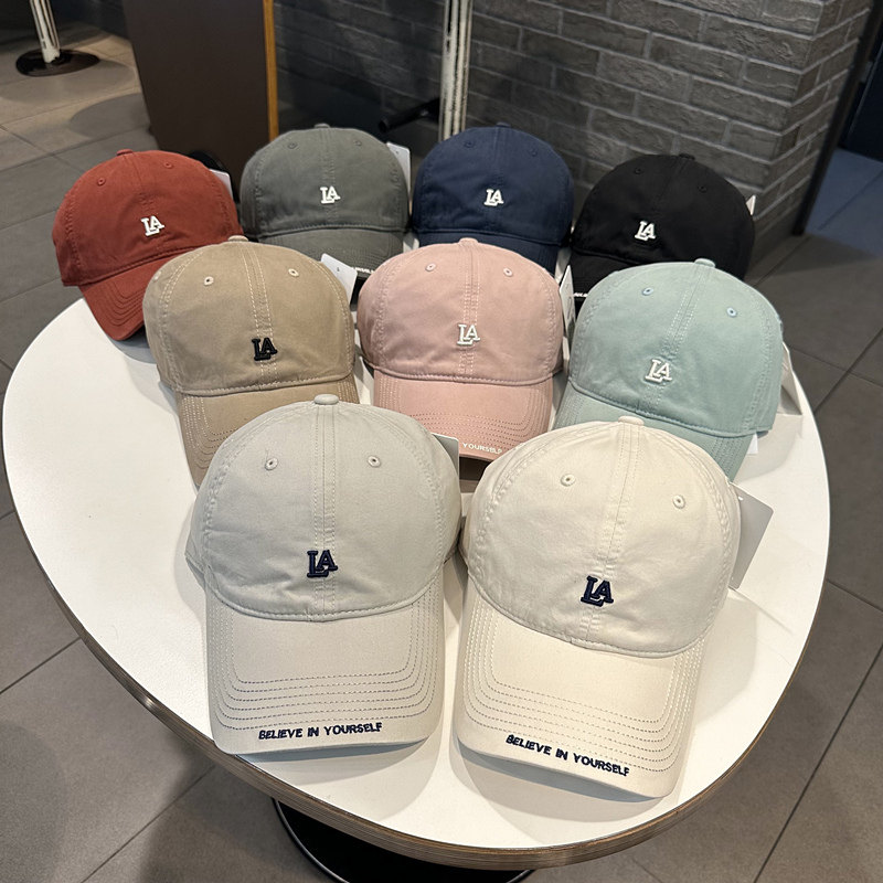棒球帽女韩版简约小字母休闲弯檐帽街头百搭帽檐字母刺绣鸭舌帽