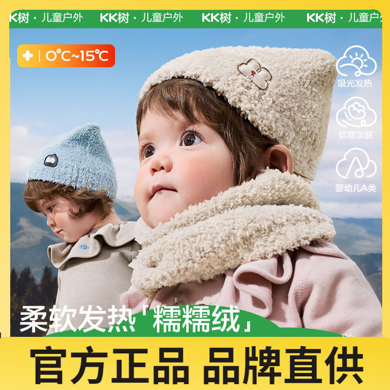 KK树宝宝帽子秋冬款婴儿毛绒帽男童女孩保暖围脖A类小月龄护耳帽