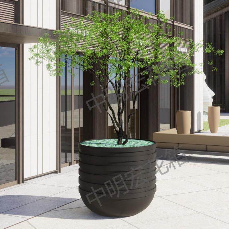 定制户外不锈钢花盆园艺观赏花钵波纹凹凸环形造型景观商业街花器