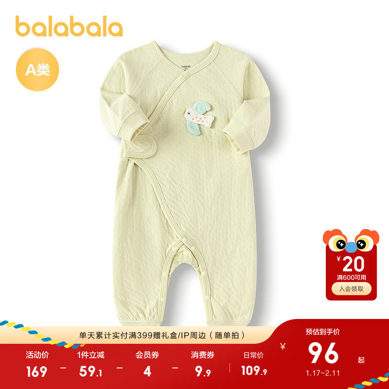 婧麒新生儿婴儿衣服秋冬夹棉满月纯棉初生宝宝秋装连体衣a类爬服